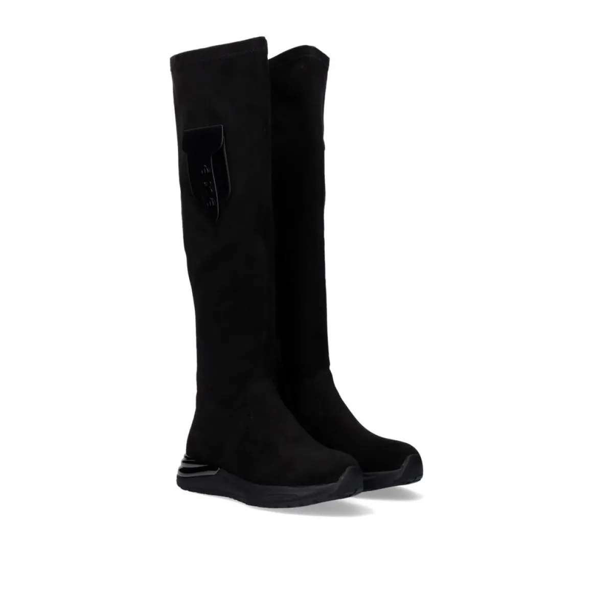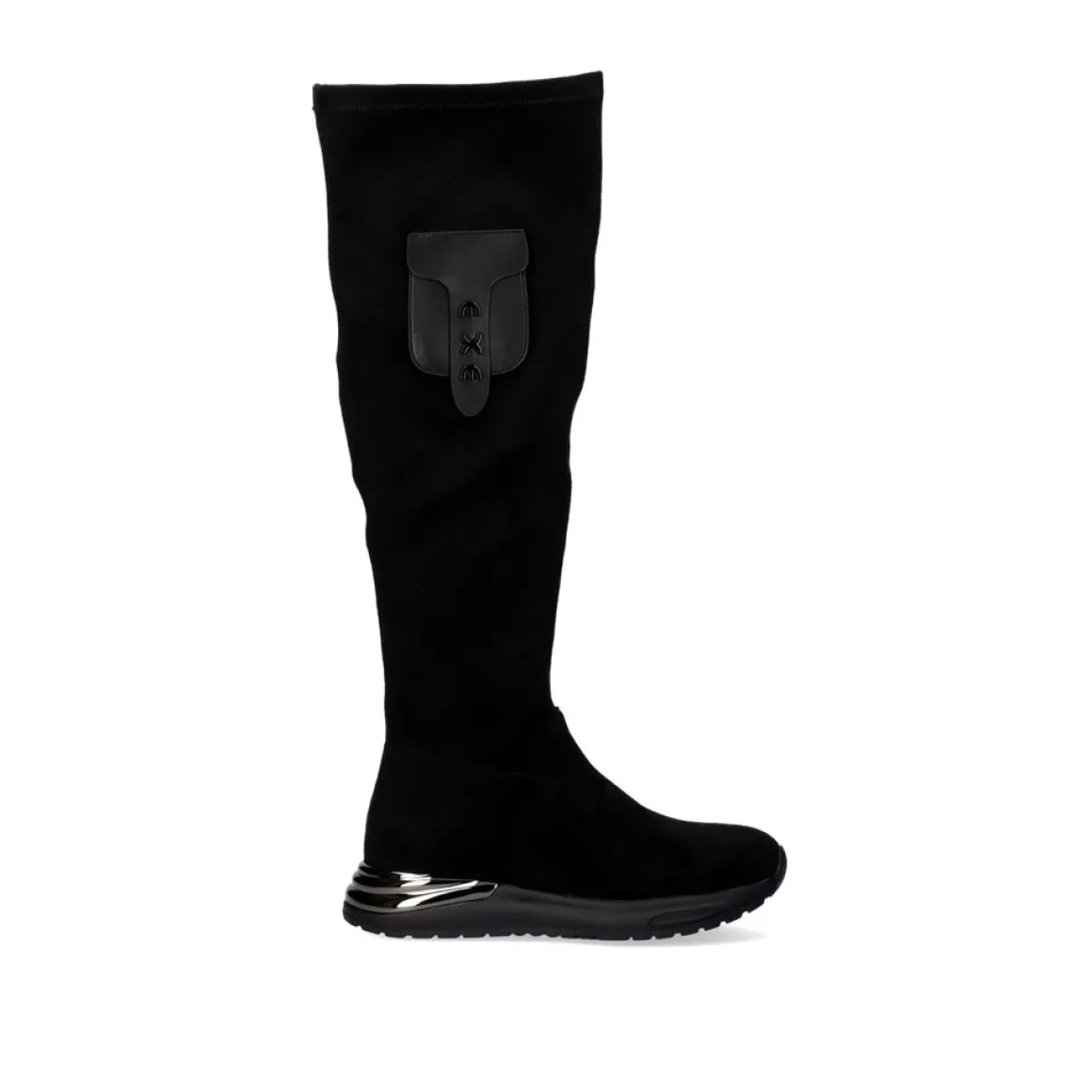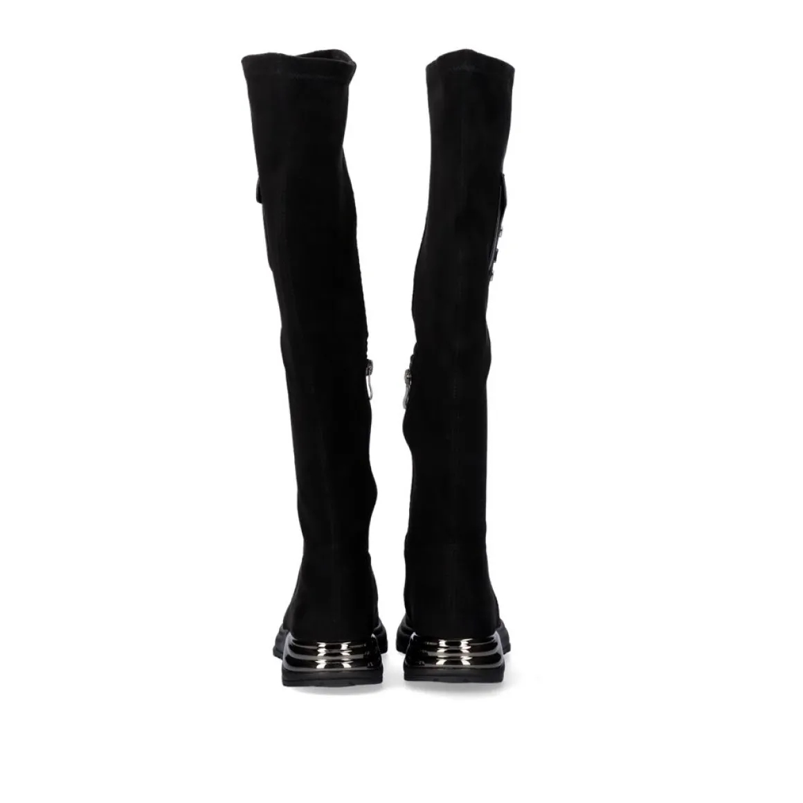 Botas Altas Em Preto Com Detalhes Na Lateral. Calcanhar De 3,5 Cm E Cana De 46,5 Cm. Esta E Composta Por Sola Textil, Camurca De Estilo Cortado E Sola Sintetica.