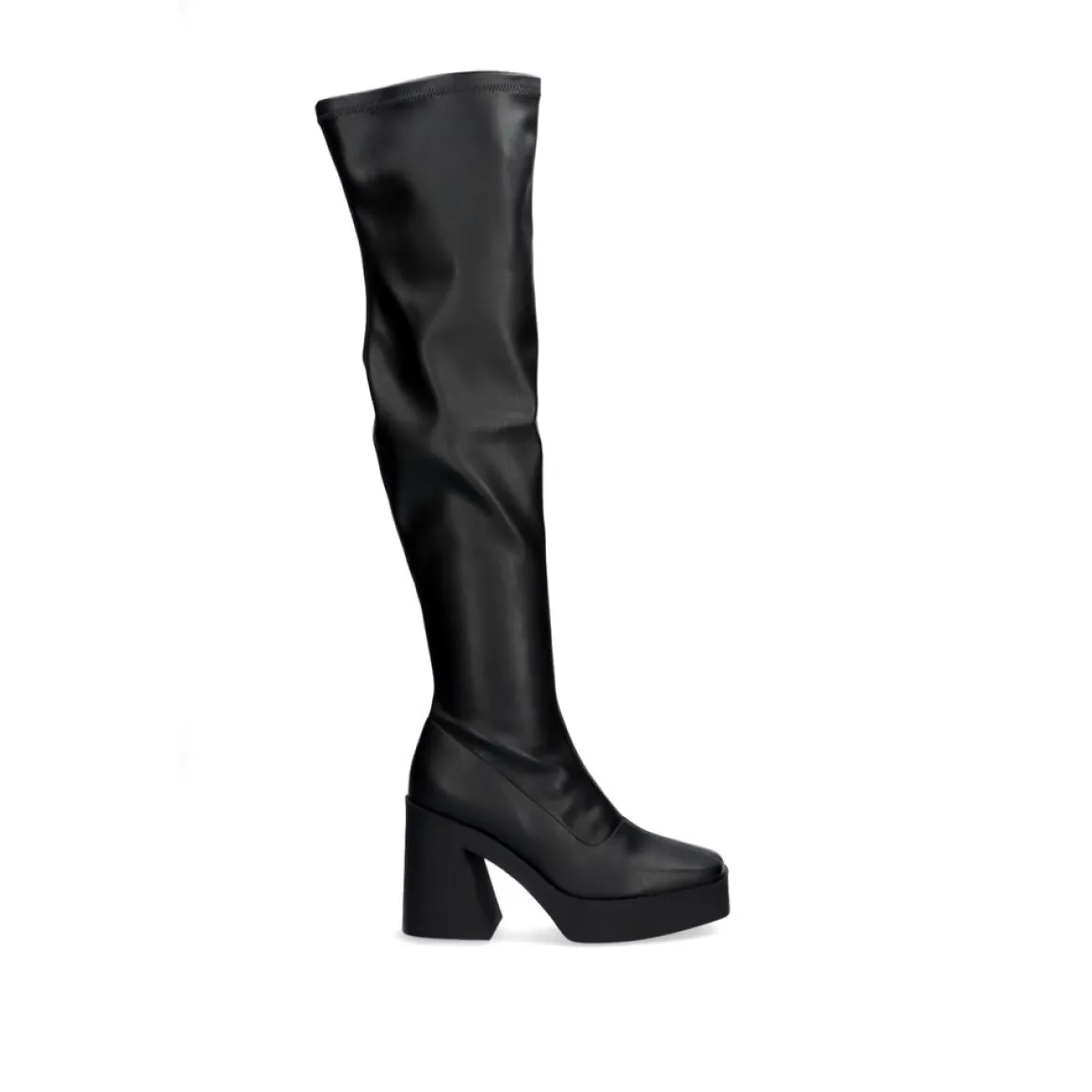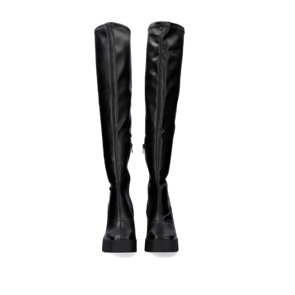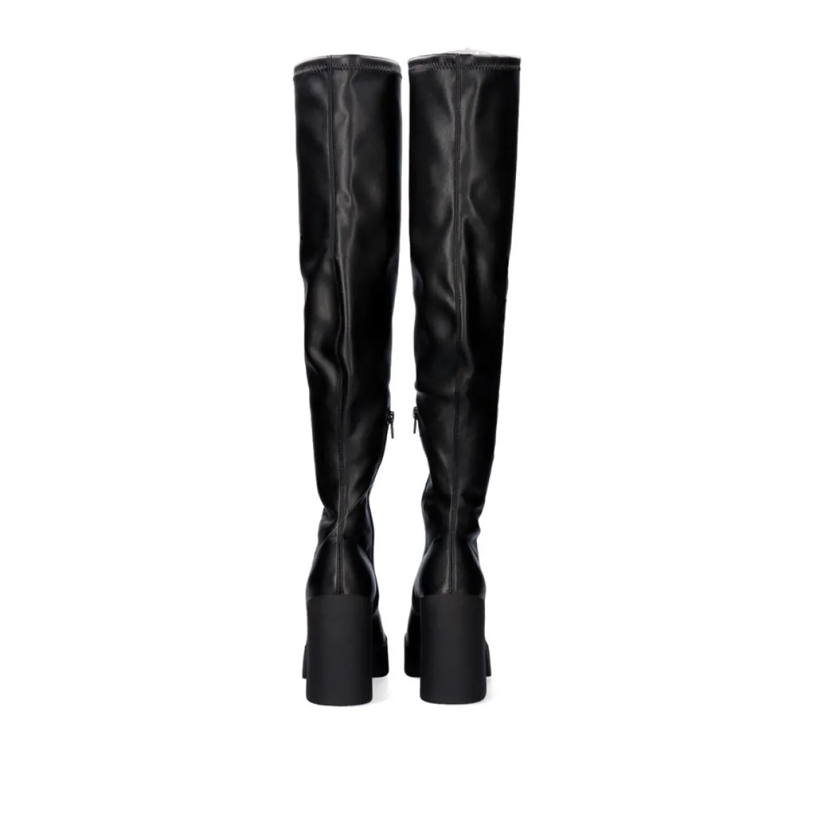 Bota De Salto Alto Em Preto. Fecho De Correr E Sola Sintetica, Sola Sintetica E Pu Superior.
