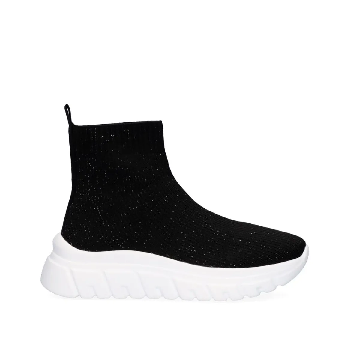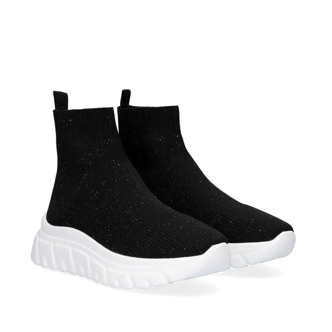 Tenis Estilo Meia Preta Com Detalhes Brilhantes E Plataforma De 5,5 Cm. Fabricado Com Materiais Sinteticos Na Sola, Kint Superior E Sola Texti