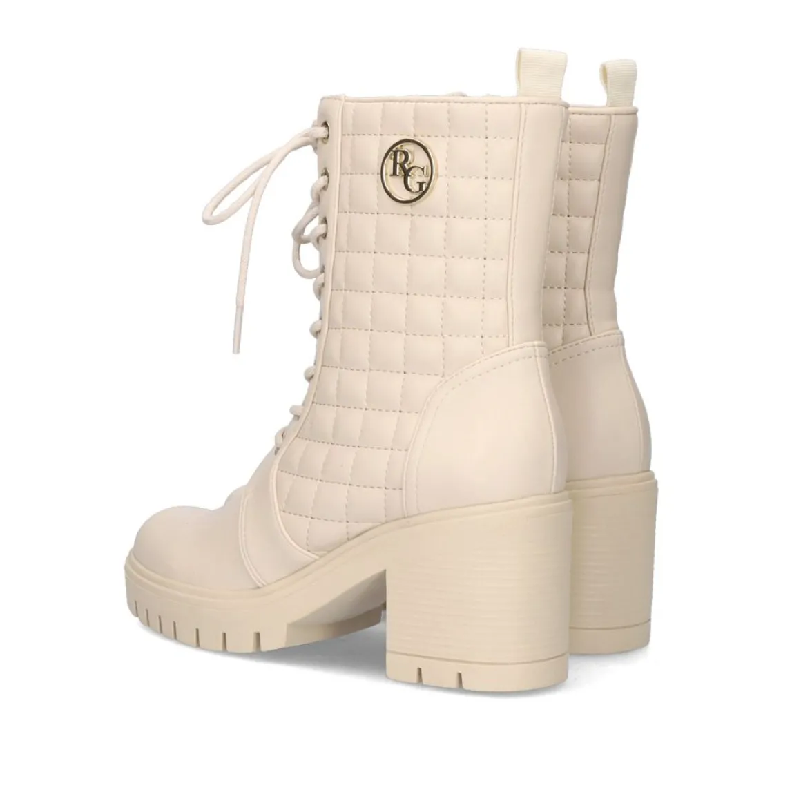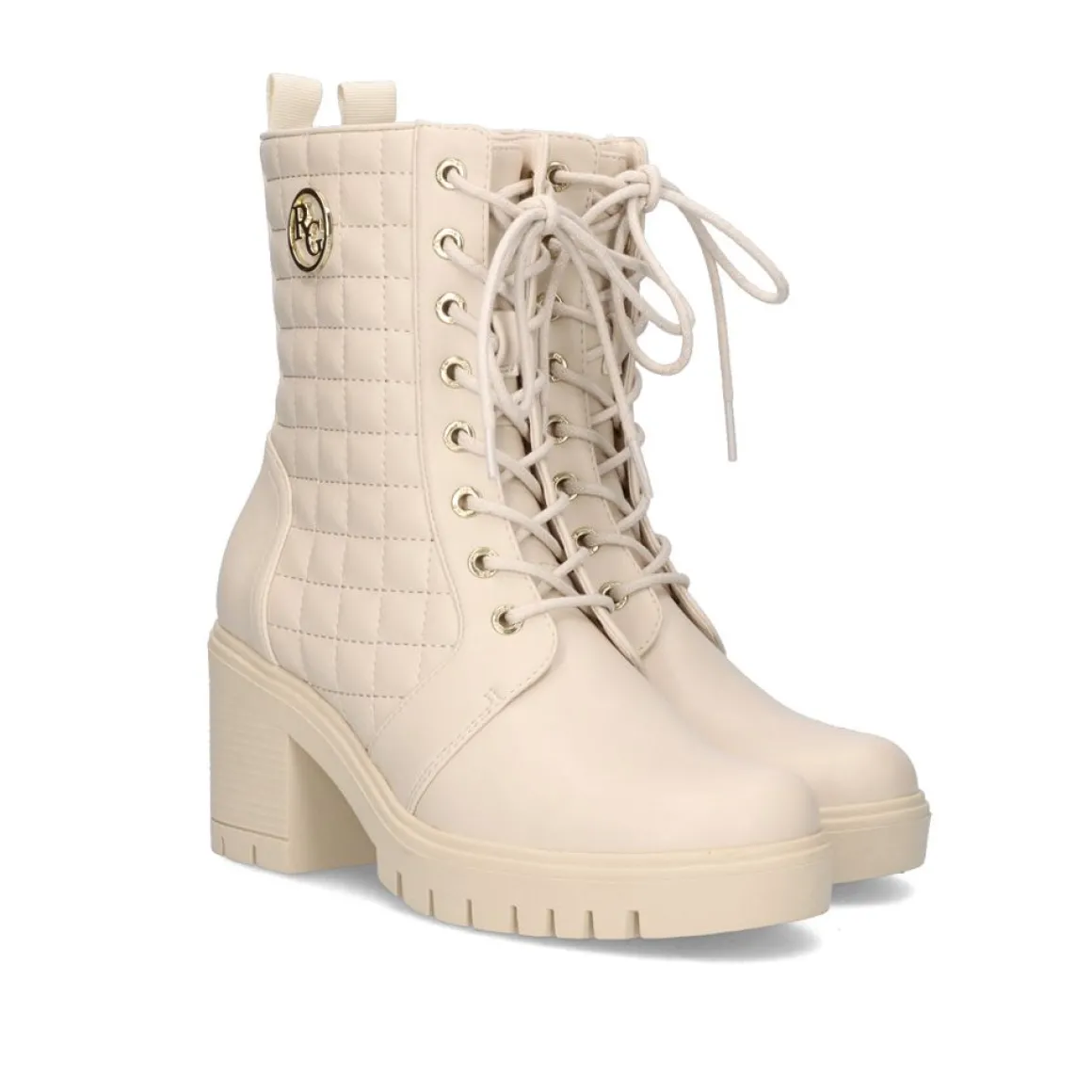 Botas De Tornozelo De Estilo Militar Em Cor De Gelo Com Um Detalhe Dourado Na Lateral E Atacadores Na Frente. Calcanhar Cm De Altura E Composicao Sintetica Para A Sola, A Parte Superior De Pu E A Sola De Couro.