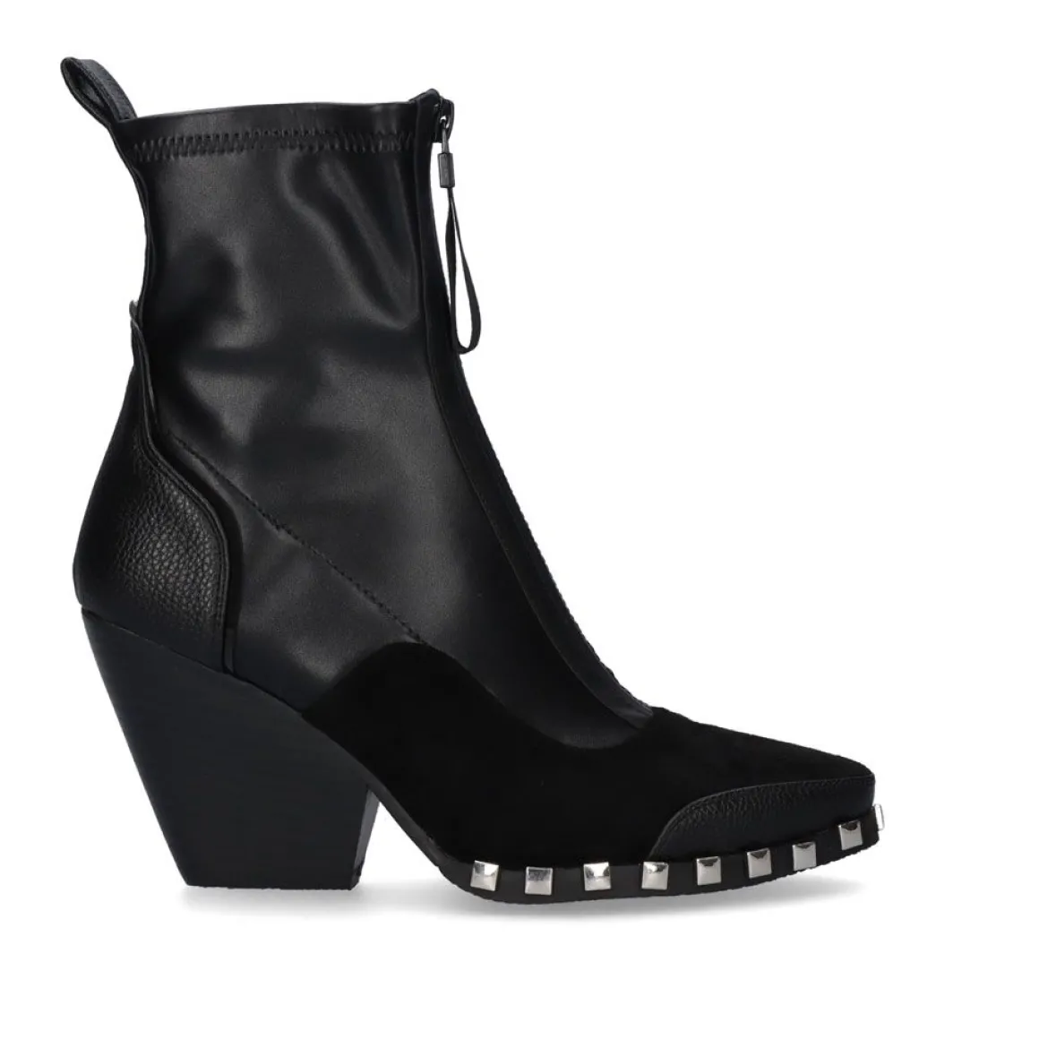 Botins Estilo Cowboy Em Preto. O Seu Corte E Sola Sao Feitos De Material Sintetico E A Sua Palmilha E Feita De Material Textil. A Altura De Sua Bengala E De 15 Cm E Seu Calcanhar Mede 9 Cm. Tem Pregos Decorativos E Fecho Com Fecho De Correr.