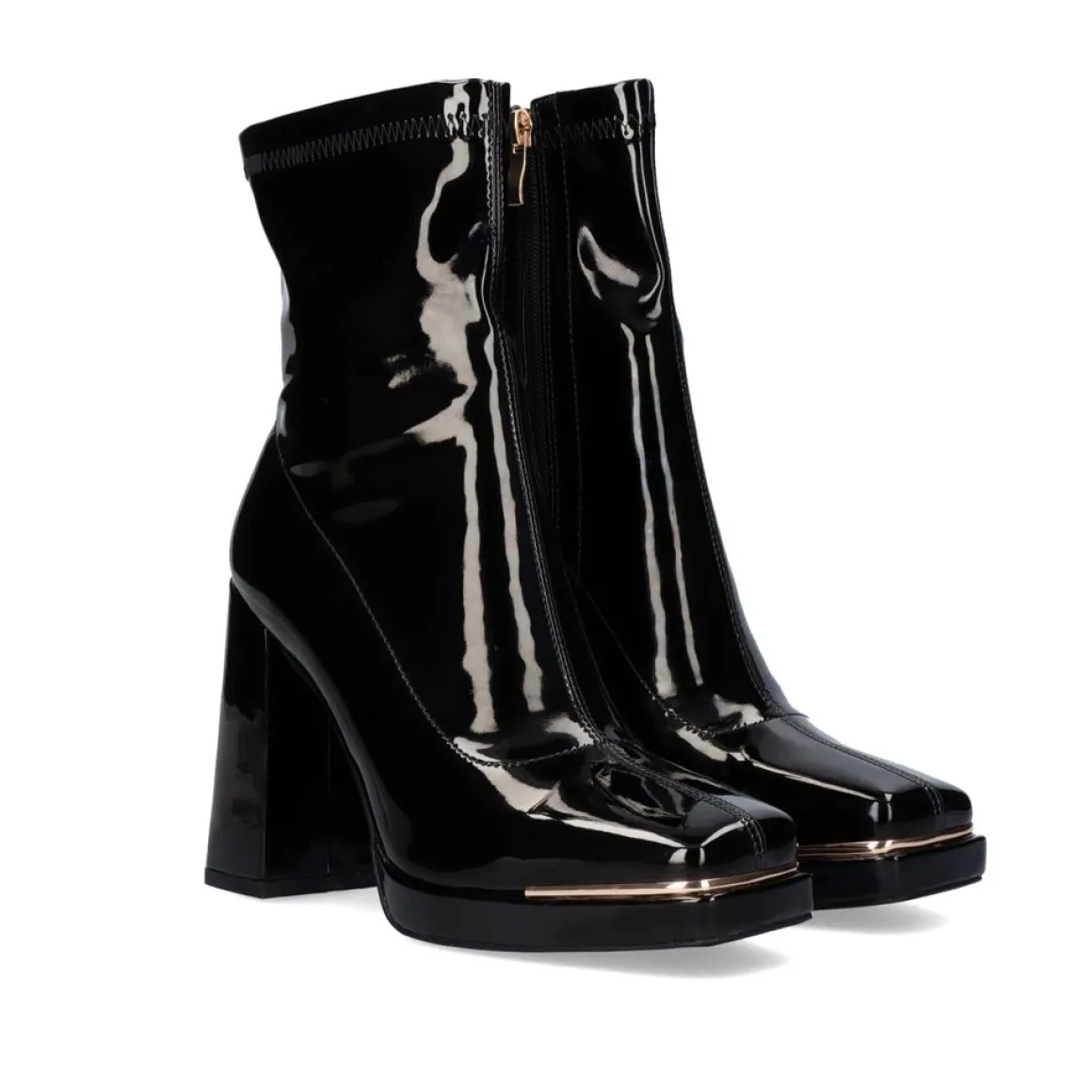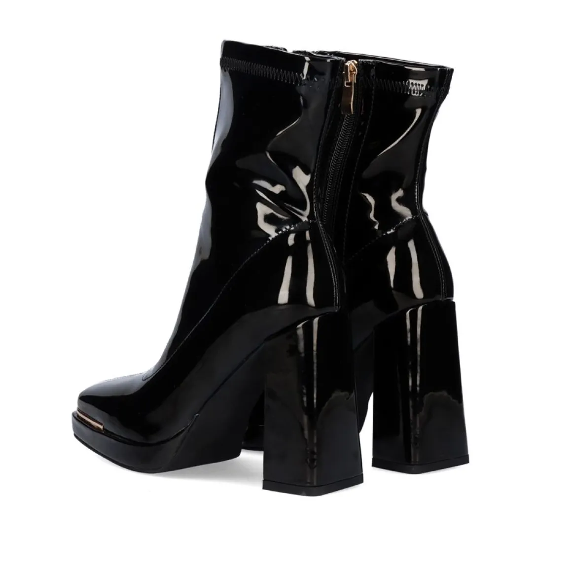 Botas De Tornozelo Em Couro Preto, Calcanhar De Contacto De 10,5 Cm, Calcanhar De 11,5 Cm E Altura Da Bengala De 15,5 Cm. Fechamento Com Fecho De Correr Na Lateral E Composicao De Sola Sintetica E Sola Com Corte Em Estilo De Patente.