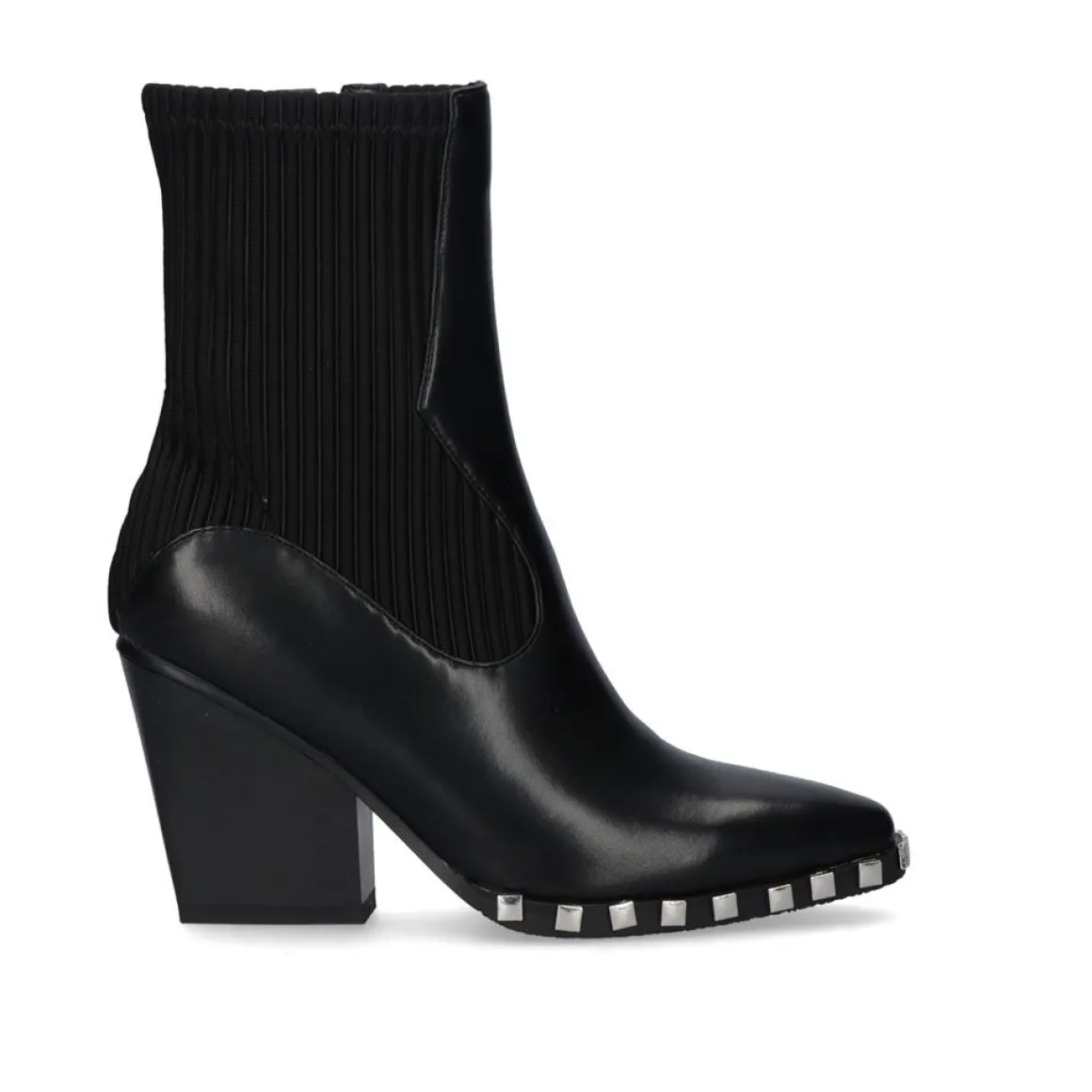 Botins Estilo Cowboy Em Preto. O Seu Corte E Palmilha Sao Feitos De Material Textil E A Sua Sola E Feita De Material Sintetico. A Altura De Sua Bengala E De 16 Cm E Seu Calcanhar Mede 9 Cm. Tem Pregos Decorativos E Fecho Com Fecho De Correr.