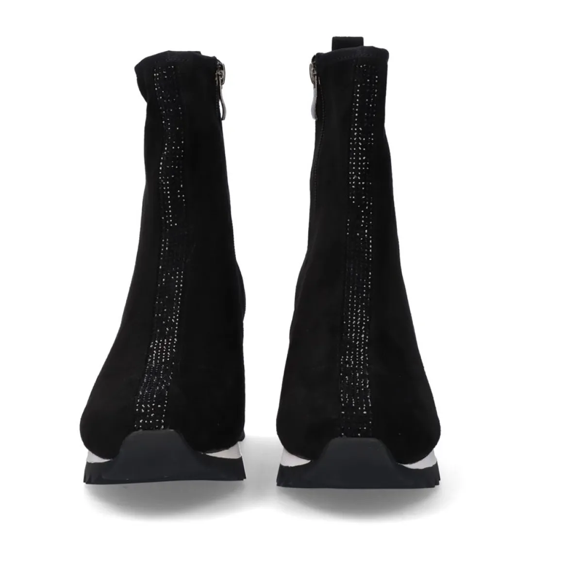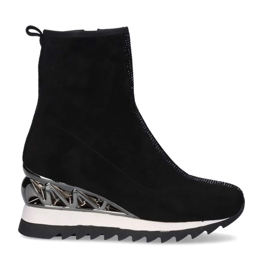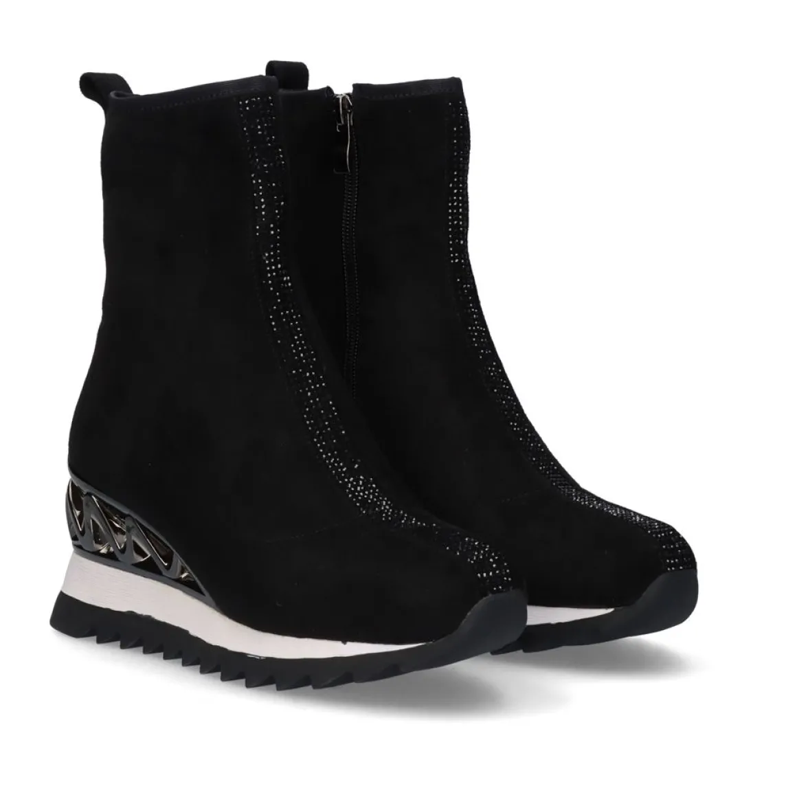 Botins De Toque Suave Com Brilhante. O Seu Corte E Palmilha Sao Feitos De Material Textil E A Sola E Feita De Material Sintetico. Sua Cunha Mede 7,Medio E Tem Um Fecho Com Ziper. Alem Disso, Tem Decoracoes Brilhantes.A Cana Tem 1Medio De Altura.