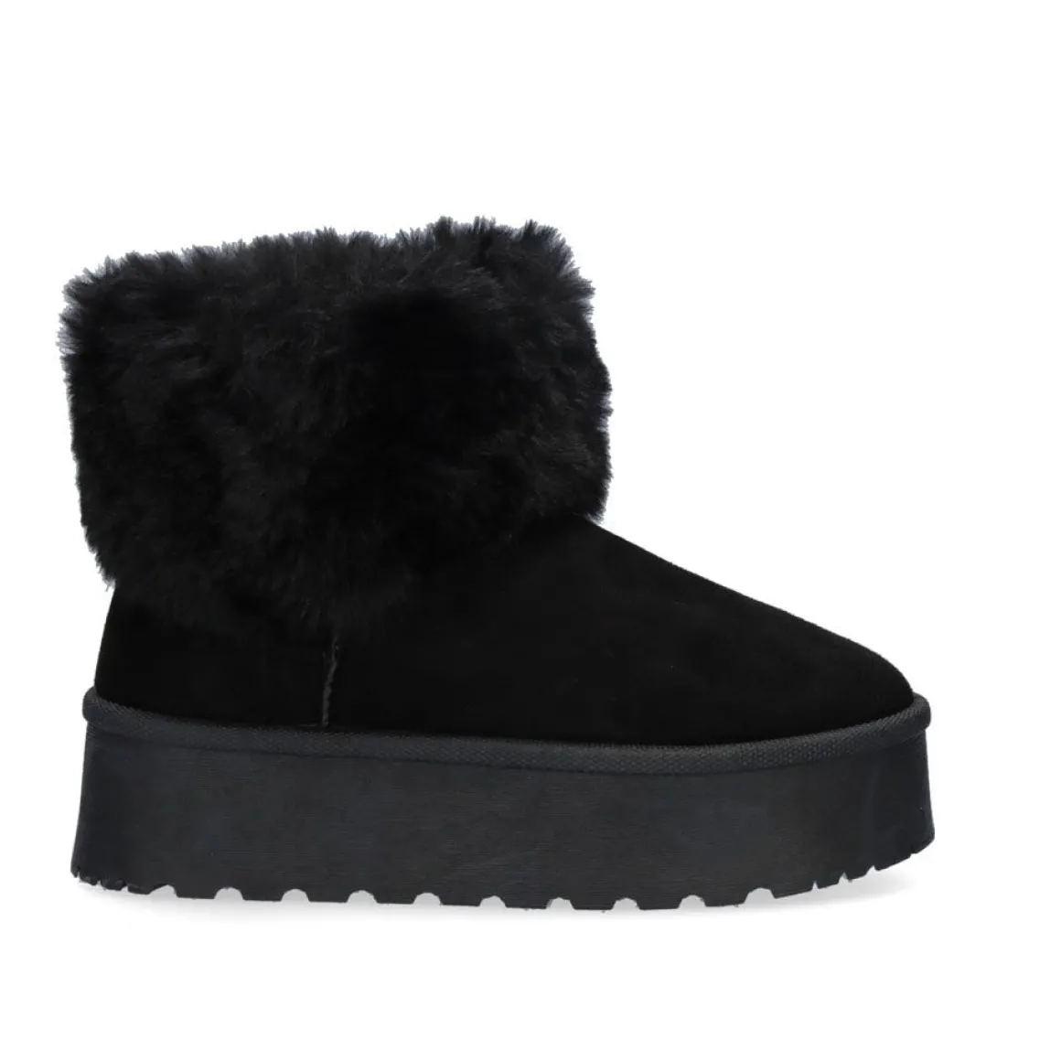 Botins De Plataforma Em Preto. Seu Corte E Palmilha Sao Feitos De Material Textil, Sua Sola E Feita De Material Sintetico E Seu Interior E Cabelo Macio Como A Area Do Tornozelo. A Bengala Tem Uma Altura De 12 Cm. Alem Disso, Sua Plantaforma Mede Medio No Calcanhar E 4,Medio Na Ponta.