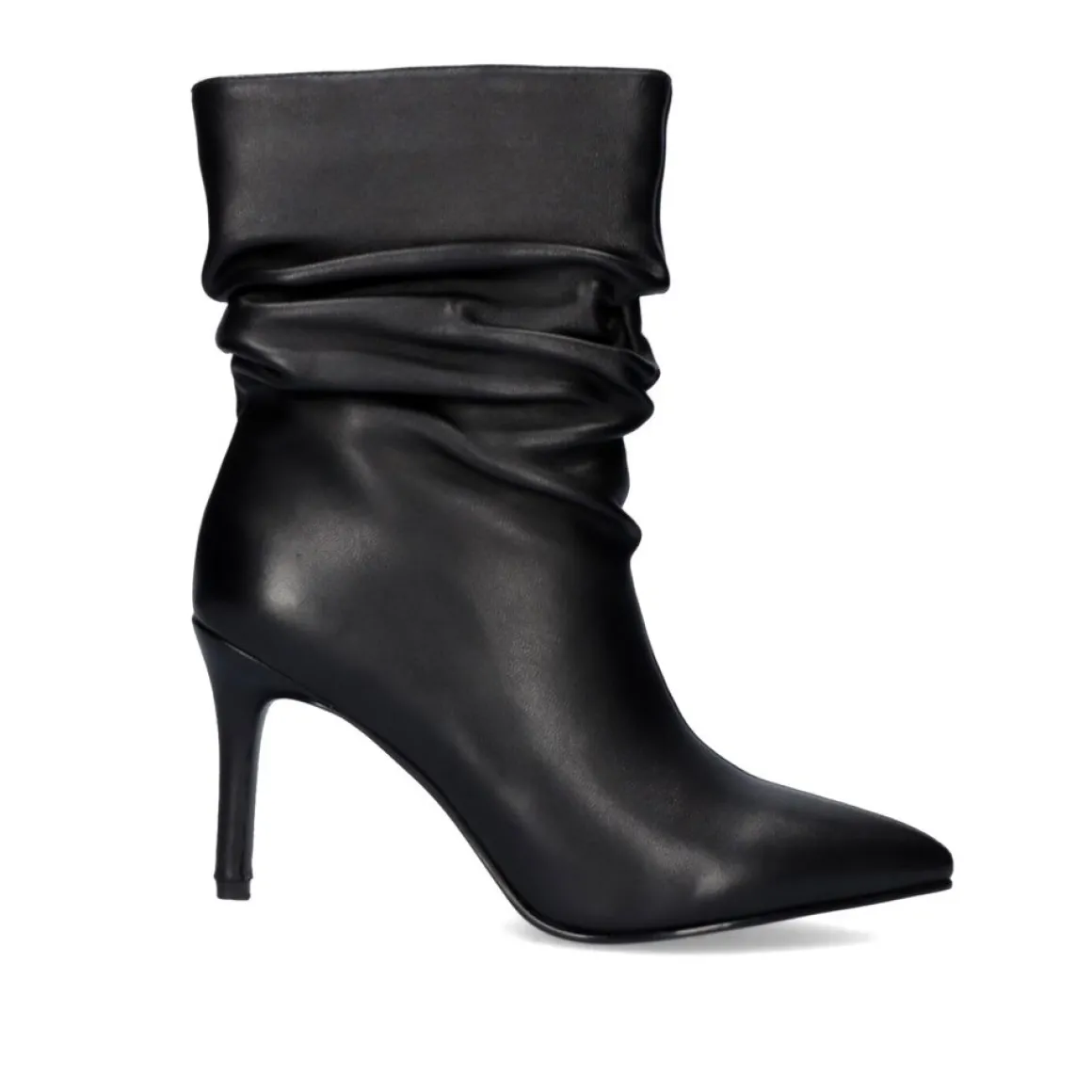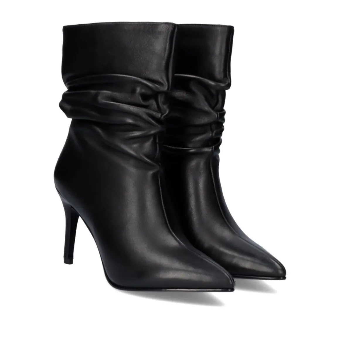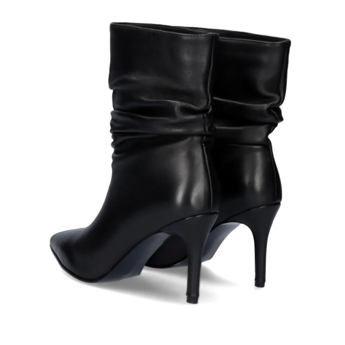Botas De Tornozelo Pretas Com Salto De Couro De Tecido Drapeado E Altura Do Salto De 9 Cm E 16 Cm De Eixo. A Sua Composicao E Feita De Materiais Sinteticos