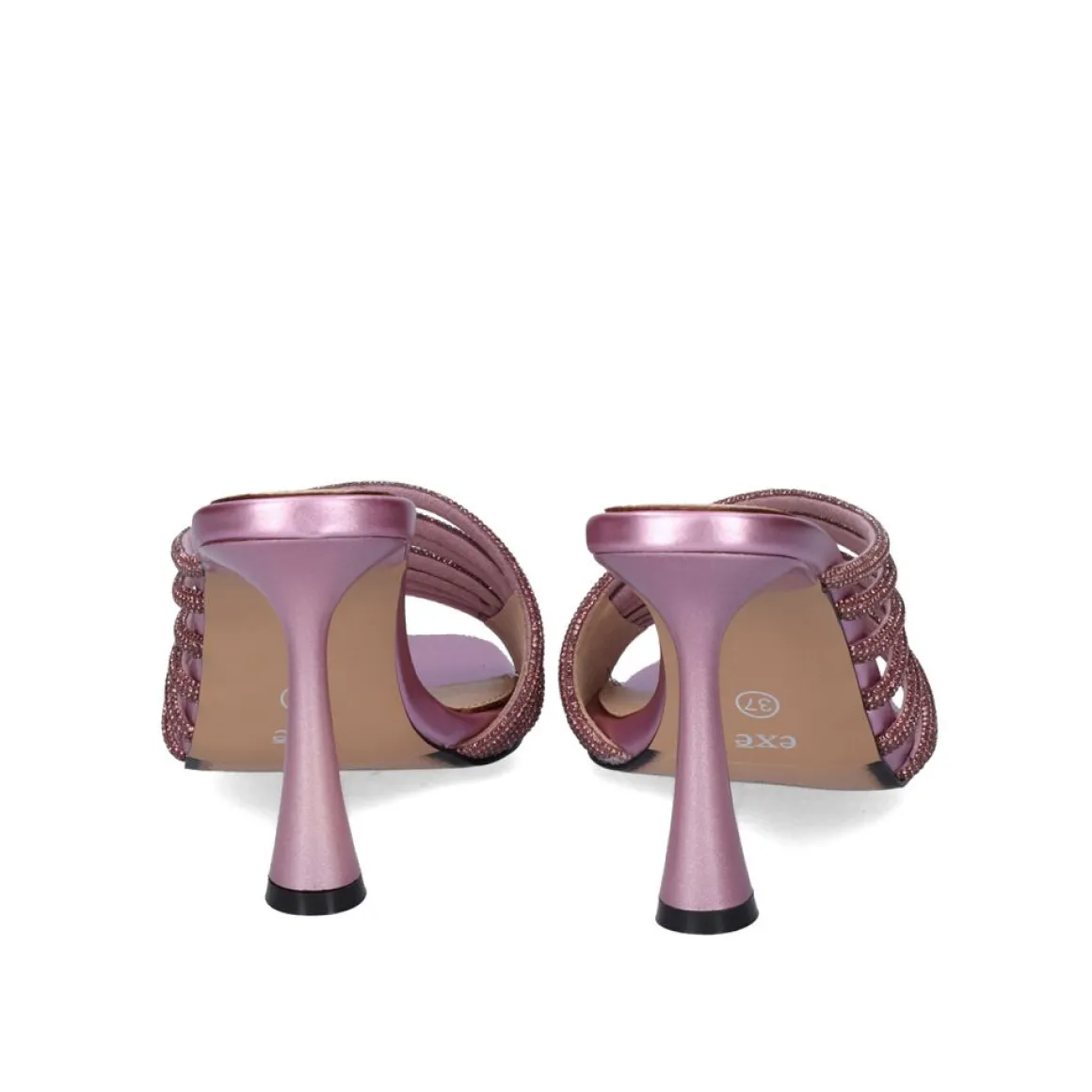 Sandalia De Salto Em Violeta. Seu Corte Na Forma De Tiras De Material Strass E Sua Sola Sao Feitas De Material Sintetico, A Palmilha E Feita De Couro. Tem Um Salto De 9 Cm.