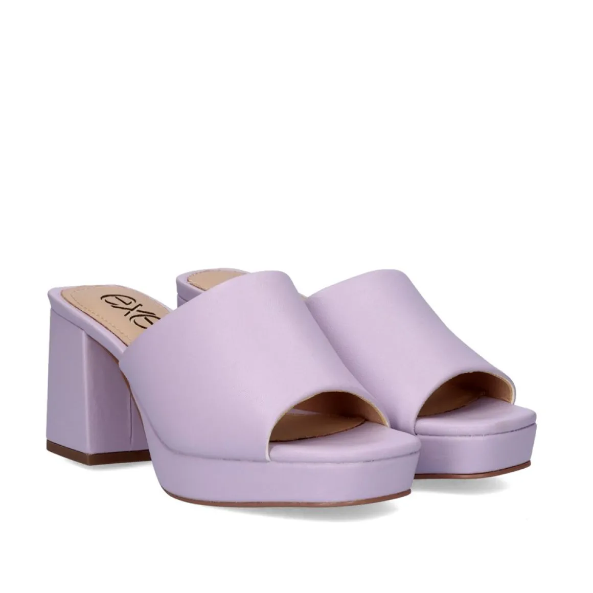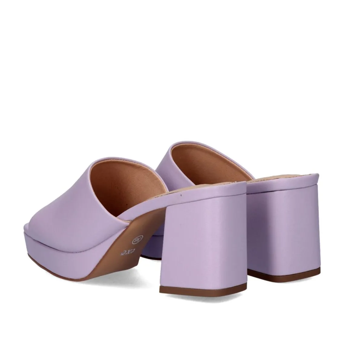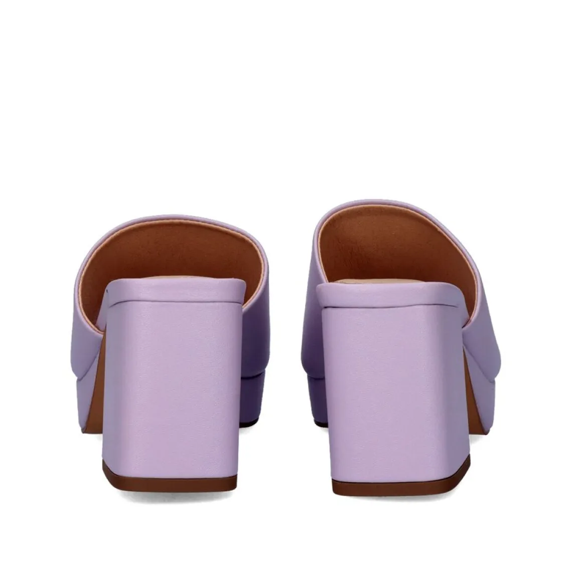 Sandalia Rasa Tipo Tamanco Tipo Tamanco Na Cor Lilas. Composto Por Materiais Sinteticos E Couro Vegetal. Altura Do Salto De 8 Cm E Plataforma De 2,5 Cm.