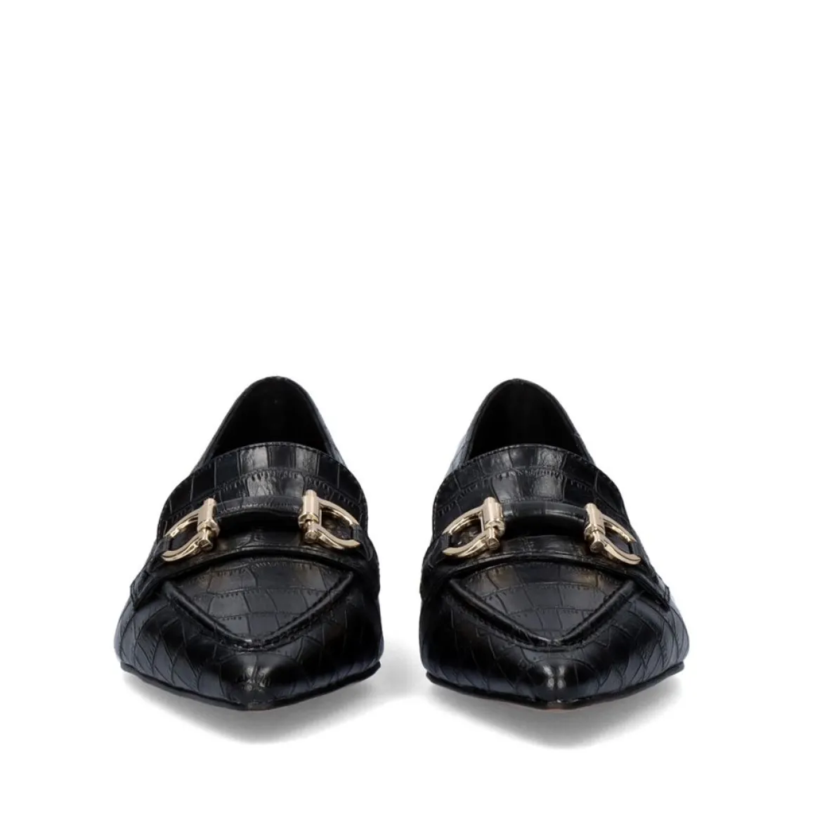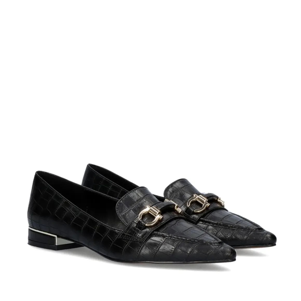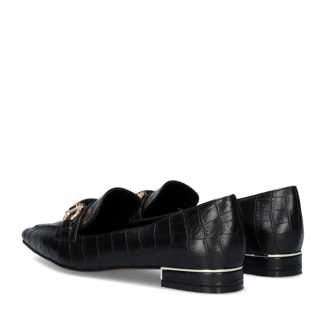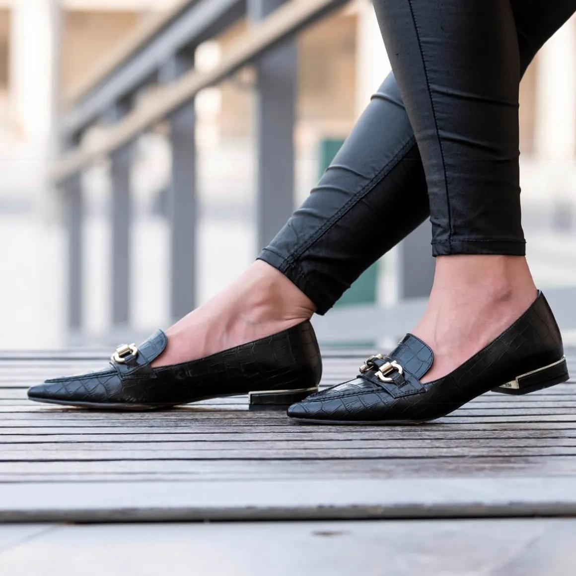 Mocassim Com Corrente Em Dourado Verona-171 Em Preto Croco
