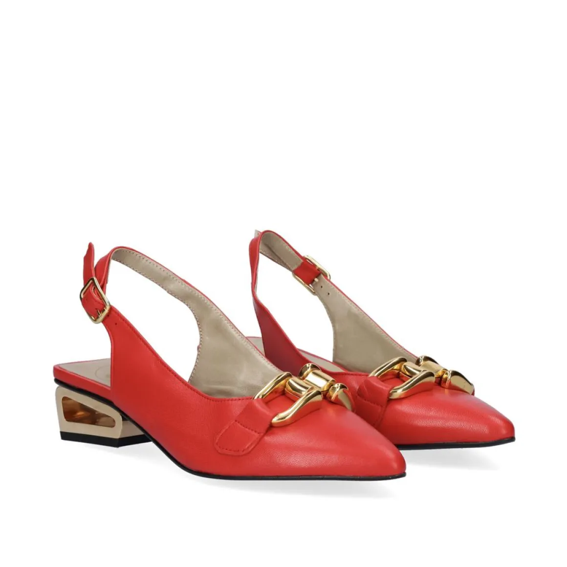 Mocassins Detalonados Em Vermelho, Com Fivela No Tornozelo E Acabamento Em Ponto. Composto Por Corte E Planta De Couro E Sola Sintetica. Altura Do Calcanhar De 3 Cm.