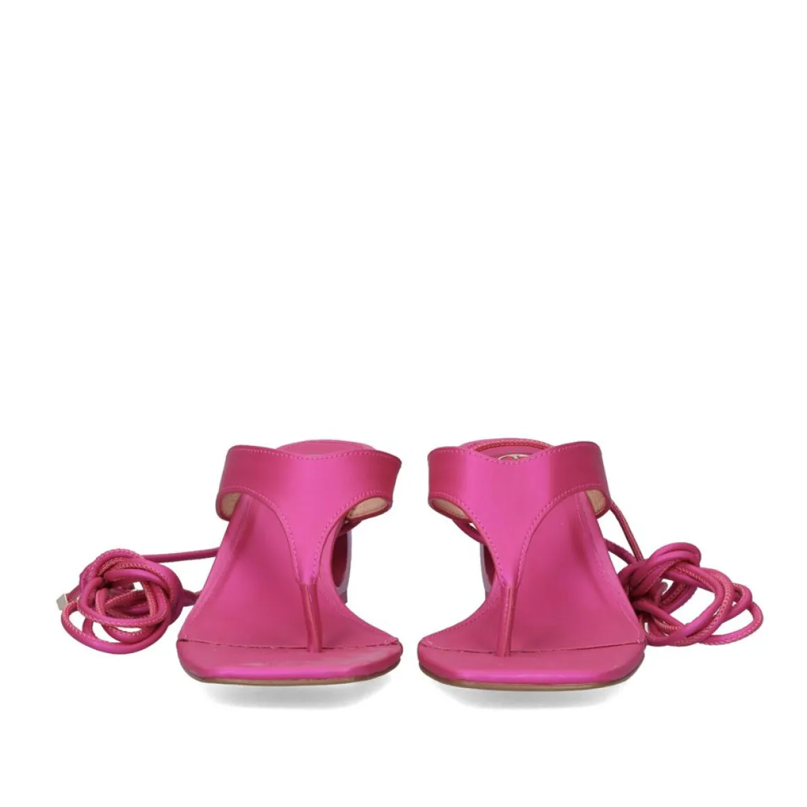 Sandalia Fuxia Com Salto De 6,5 Cm. O Corte E A Sola Sao Feitos De Material Sintetico, A Palmilha E De Couro. Tem Cadarcos Que Sao Cruzados No Tornozelo.