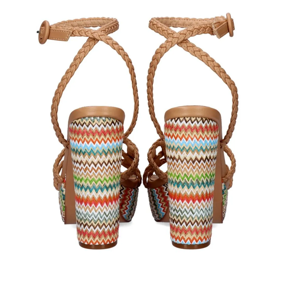 Sandálias Feitas De Material Sintetico Com Salto Multicolorido E Plataforma. O Pe E Preso Por Tiras Compostas De Material Textil Trancado E Tem Um Fechamento De Fivela No Tornozelo. Altura Do Calcanhar De 12 Cm, Plataforma De 4 Cm E Modelo De Couro.