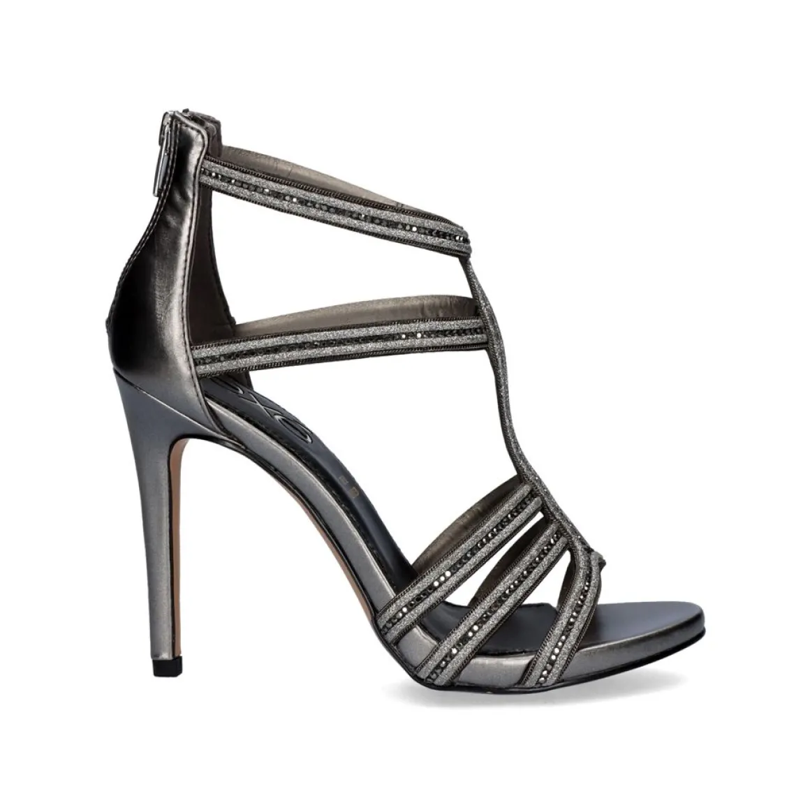 Sandalia Feita De Material Sintetico De Salto Fino. E Formado Por Tiras Brilhantes E Tem Um Fechamento Na Parte De Tras Do Ziper. Altura Do Calcanhar De 11 Cm E Palmilha De Couro.