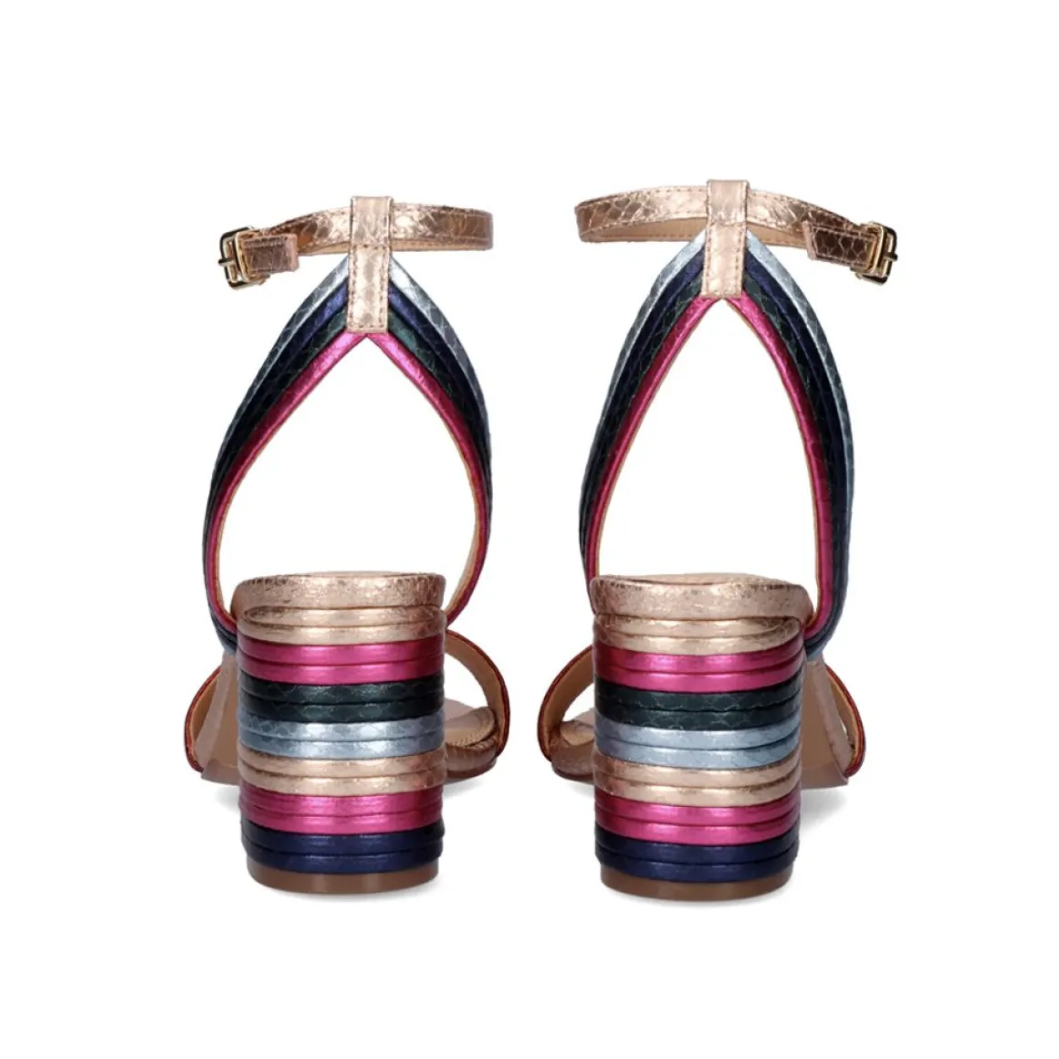 Sandalia Multicolorida Com Efeito De Escama De Cobra. Tem Um Salto Largo De 7 Cm E Tem Um Fecho De Fivela. Seu Corte E Sola Com Material Sintetico, A Palmilha E De Couro.
