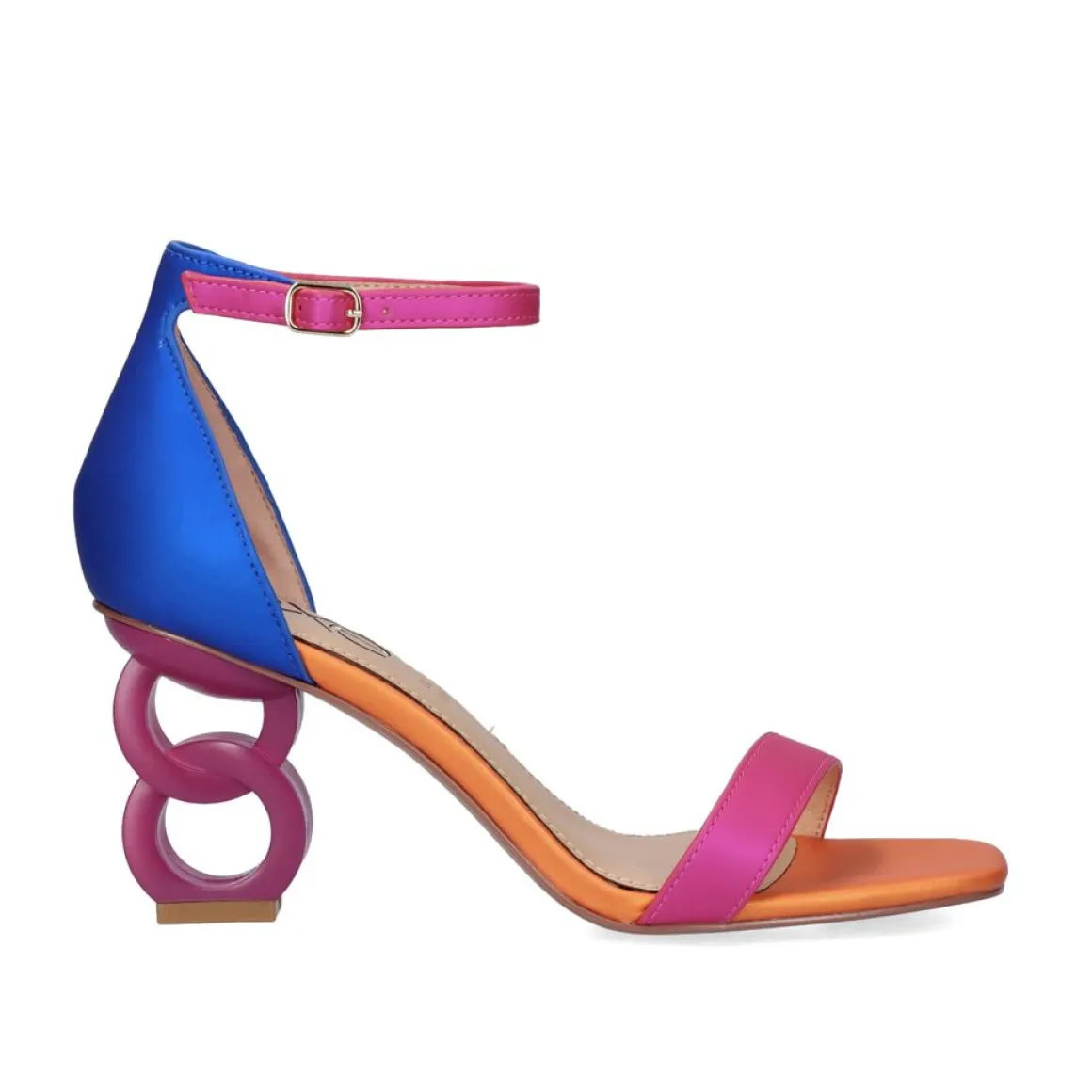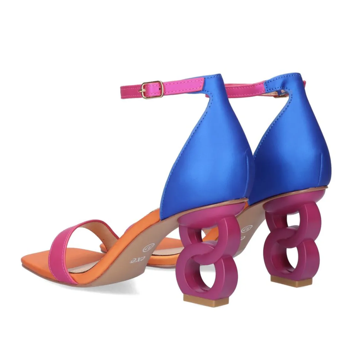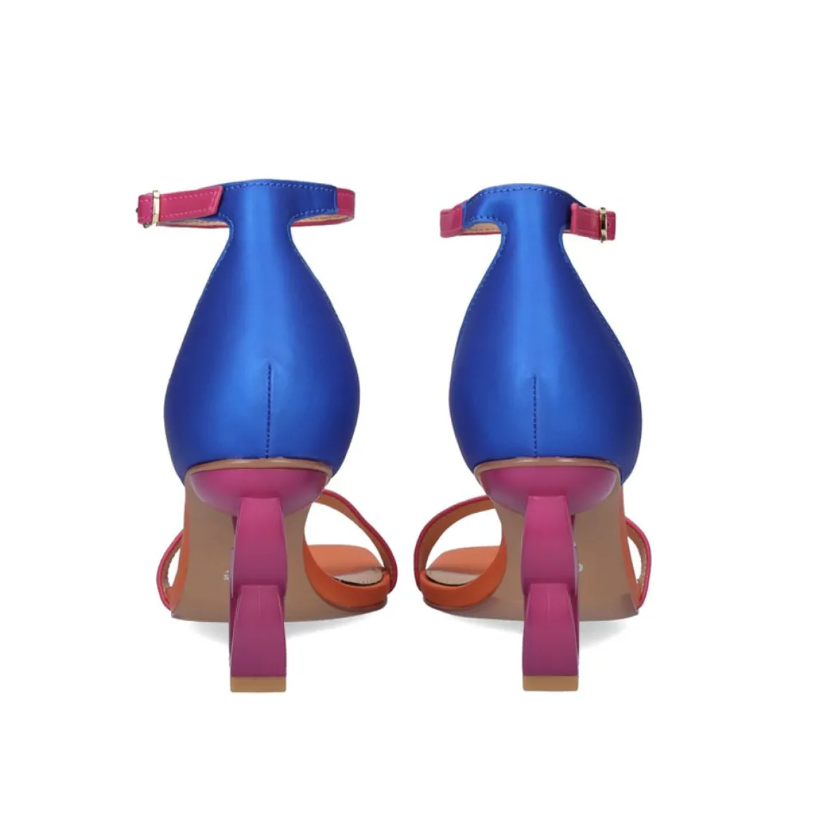Sandalia Na Cor Azul Com Salto De 7,5 Cm. Seu Corte E Sola Sao Feitos De Material Sintetico, A Palmilha E De Couro. Calha Com Fecho De Fivela Ao Tornozelo.