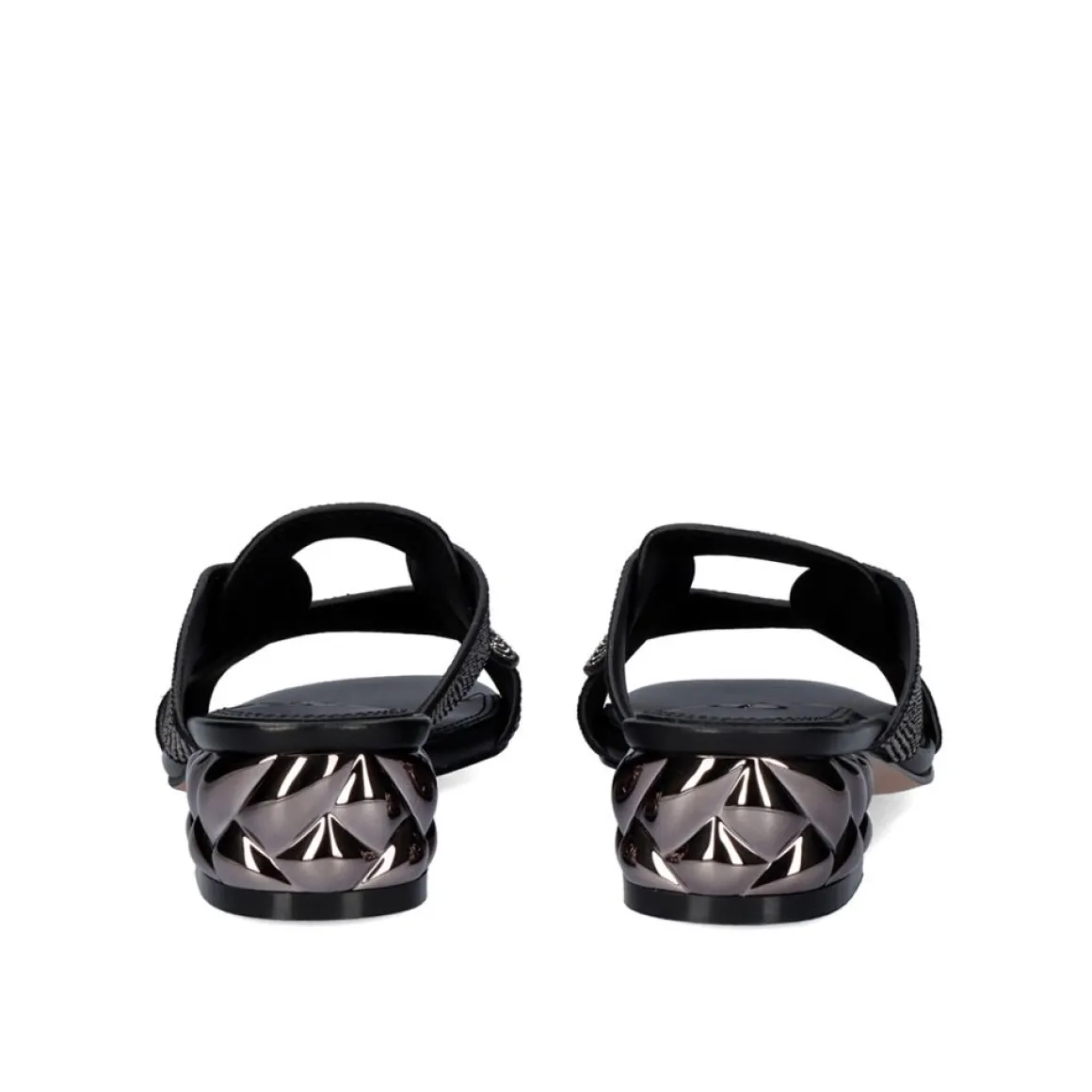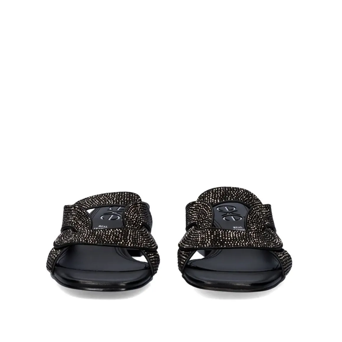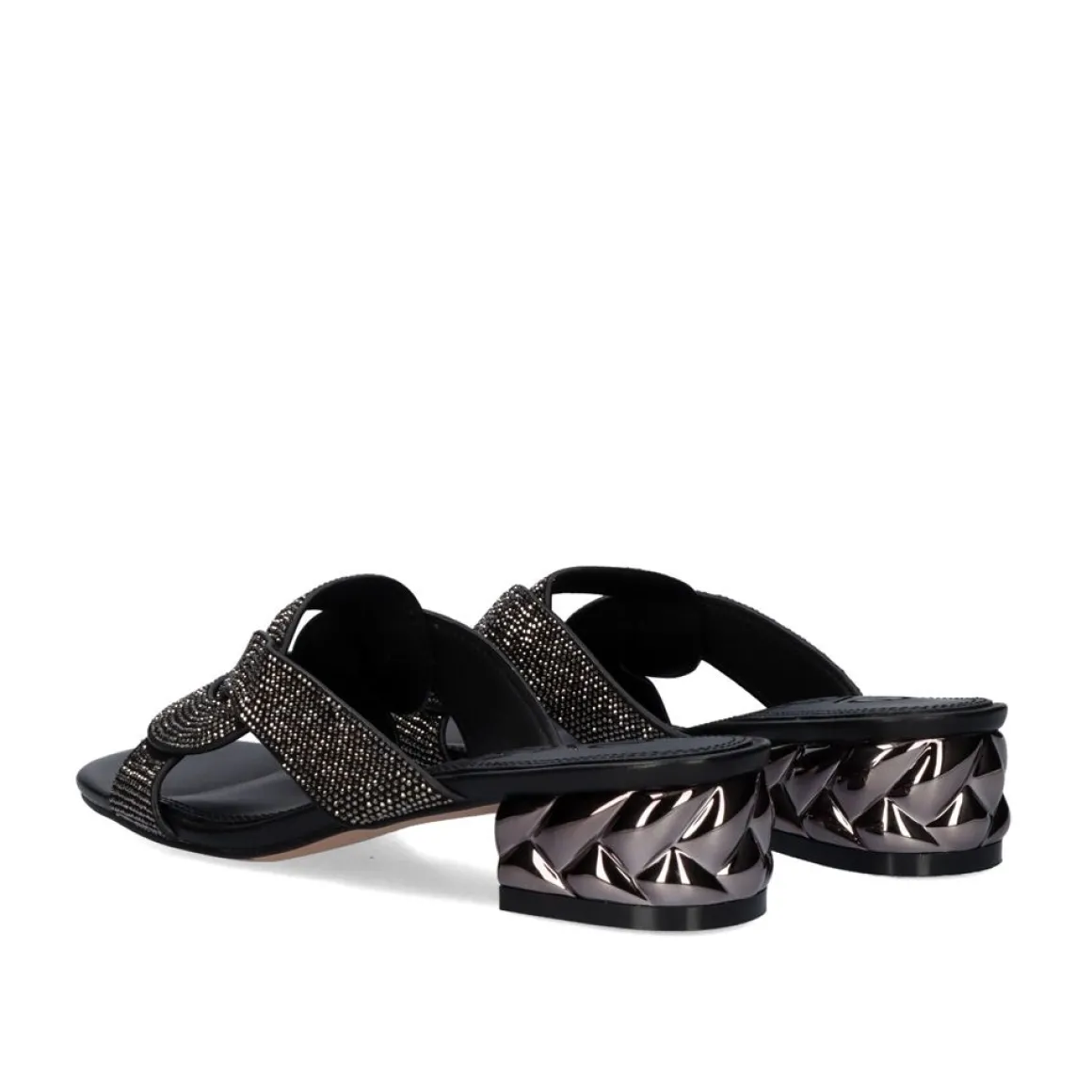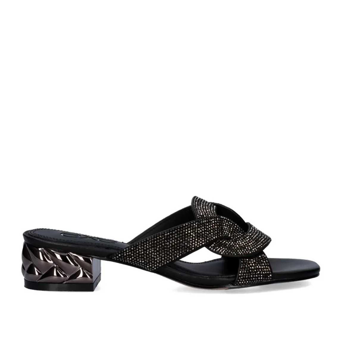 Sandalia Com Salto Baixo Con 4 Cm Em Preto. Seus Cortes Com Brilhos E Sola Sao Feitos De Material Sintetico, A Palmilha E De Couro.