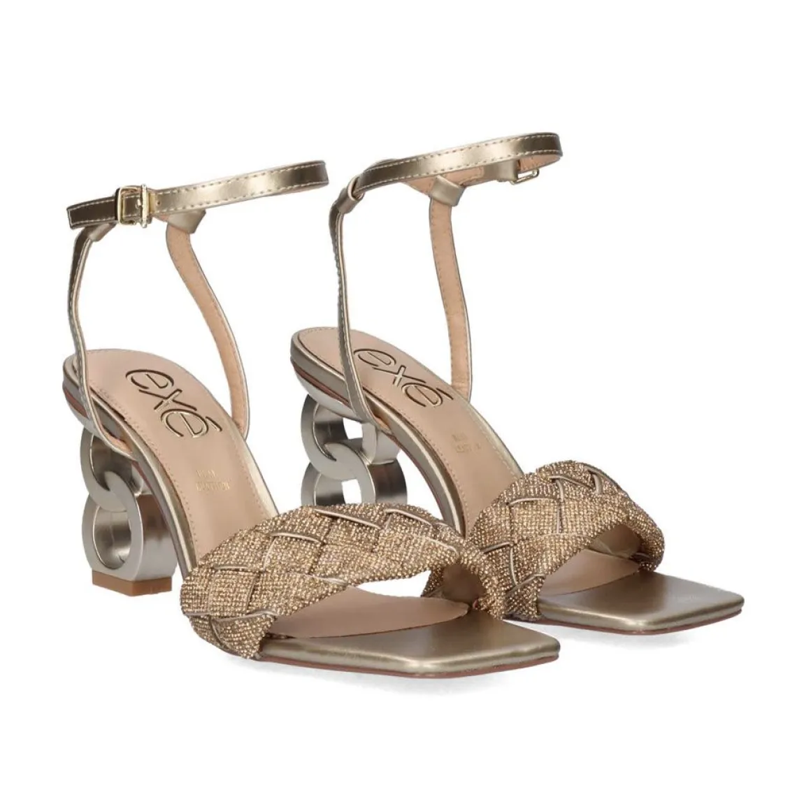 Sandalia De Material Sintetico Com Salto Baixo E Fechamento Com Fivela No Tornozelo. Formado Por Varias Tiras Brilhantes Trancadas. Seu Calcanhar De Formas Circulares Vai Para O Tom Da Cor Da Pa. Altura Do Calcanhar De 7,5 Cm E Palmilha De Couro.
