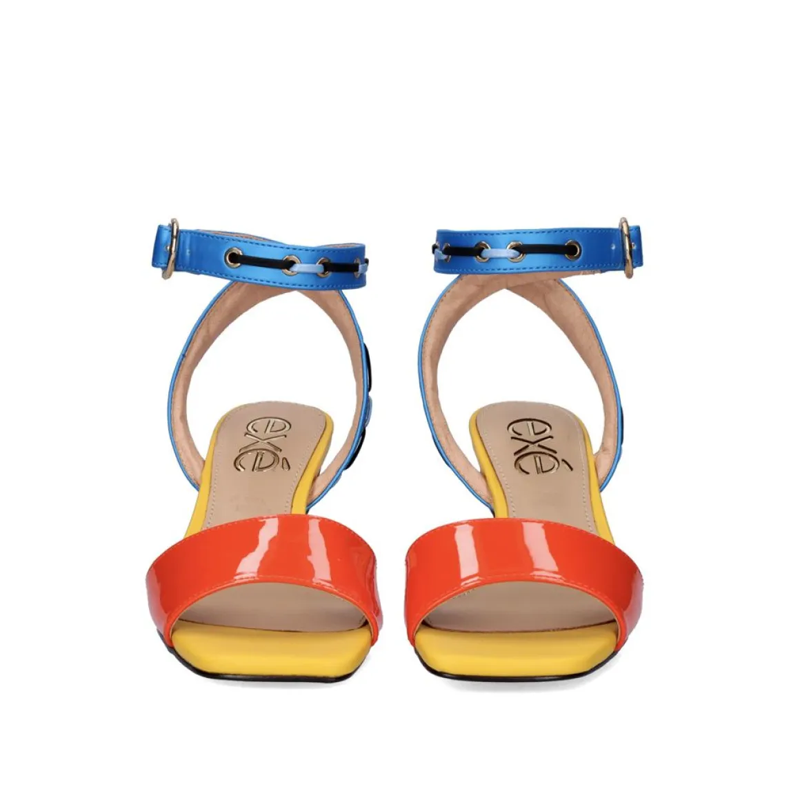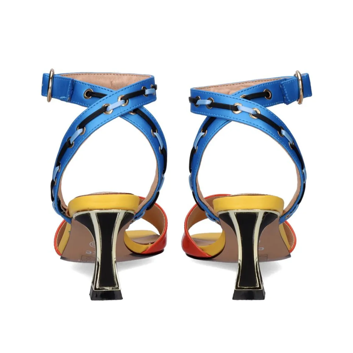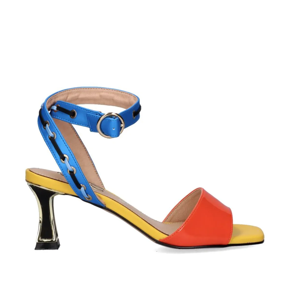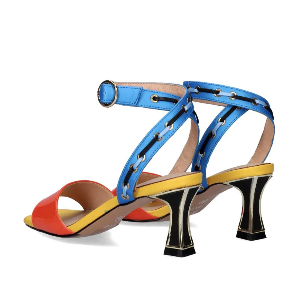 Sandalia De Material Sintetico Com Salto Baixo Quadrado E Fecho Da Fivela Do Tornozelo. Altura Do Calcanhar De 6,5 Cm E Palmilha De Couro.