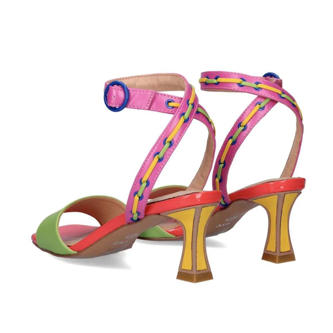 Sandalia Com Salto Baixo Quadrado E Fechamento Com Fivela Do Tornozelo. Altura Do Calcanhar De 6,5 Cm, Material De Corte Sintetico E Palmilha De Couro.