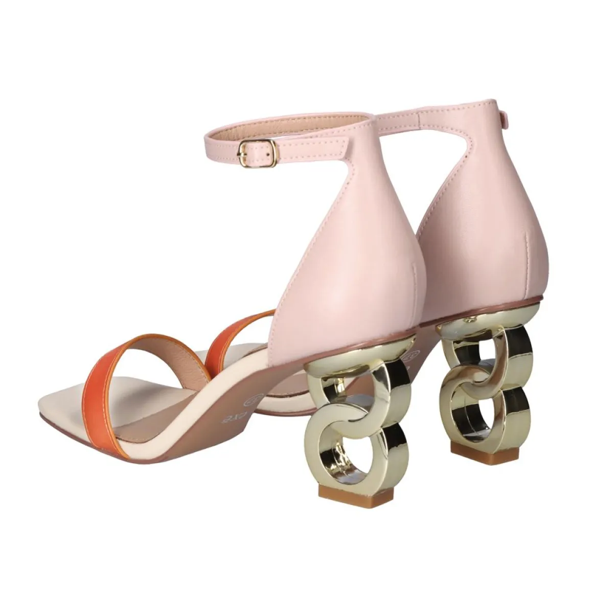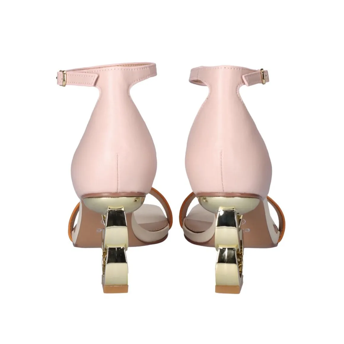 Sandalia De Salto Baixo Na Cor Nude. Tem Um Calcanhar De 7,5 Cm E Fechamento De Fivela De Tornozelo. Eles Sao Cortados E Sola De Material Sintetico E A Palmilha E De Couro.