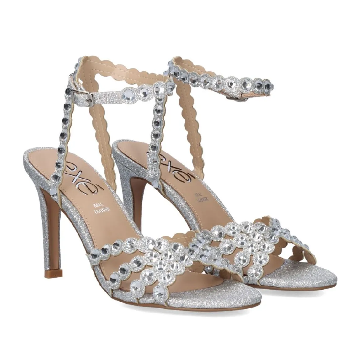 Sandalia De Salto Rebeca-376 Glitter Prata