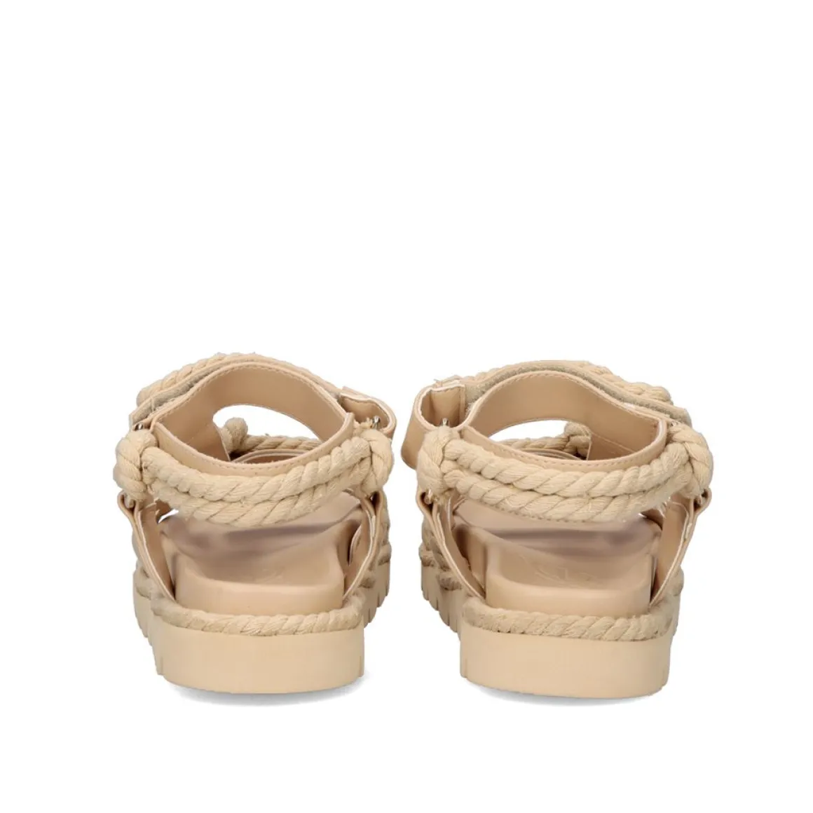 Sandalia Estilo Caranguejo Liso Feita De Material Sintetico Adornado Com Corda Trancada. Com Altura De Salto De 3 Cm E Palmilha De Couro.