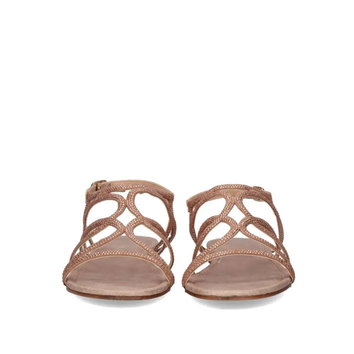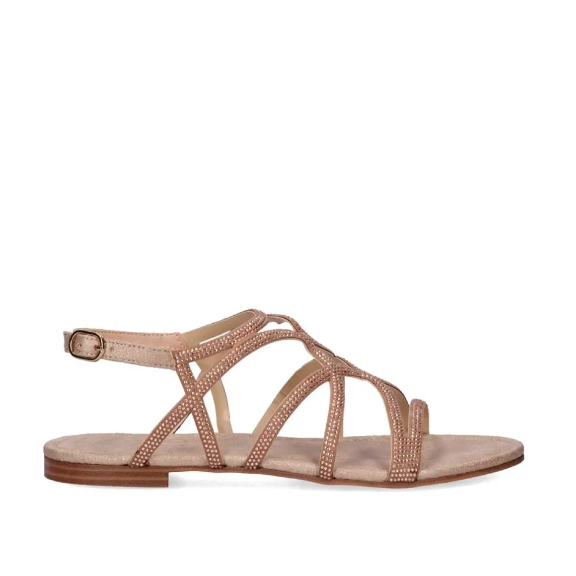 Sandalia De Material Sintetico Plano Com Fecho De Fivela E Brilhante Em Suas Alcas. Modelo De Couro.