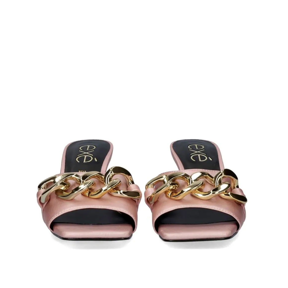 Sandalia Com Salto Baixo De 6 Cm E Ornamento Na Forma De Uma Corrente Dourada Na Pa.