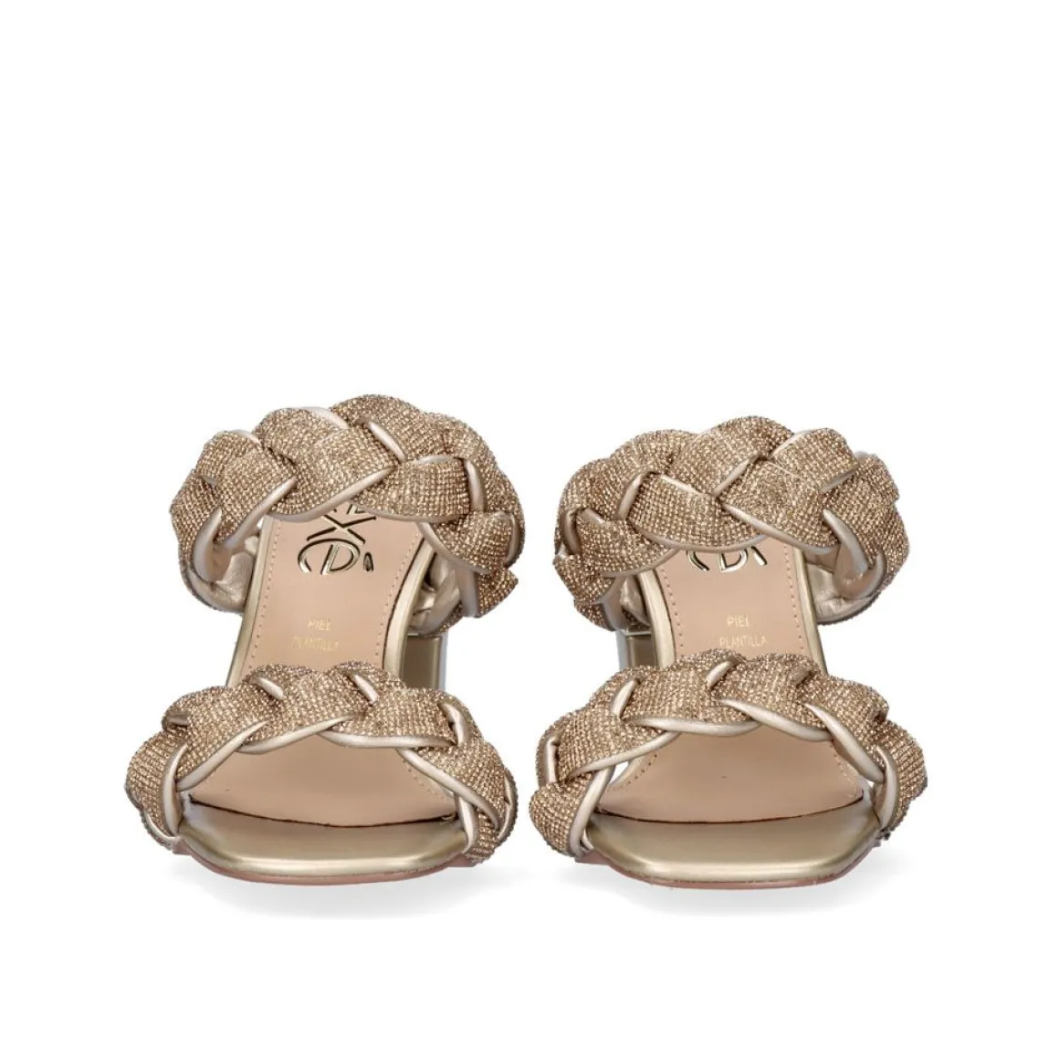 Sandalia De Salto Baixo Destaloned Com Detalhe Metalico Nele. Corte Sintetico Na Forma De Duas Tiras Trancadas Paralelas. Altura Do Calcanhar De 9 Cm E Palmilha De Couro.