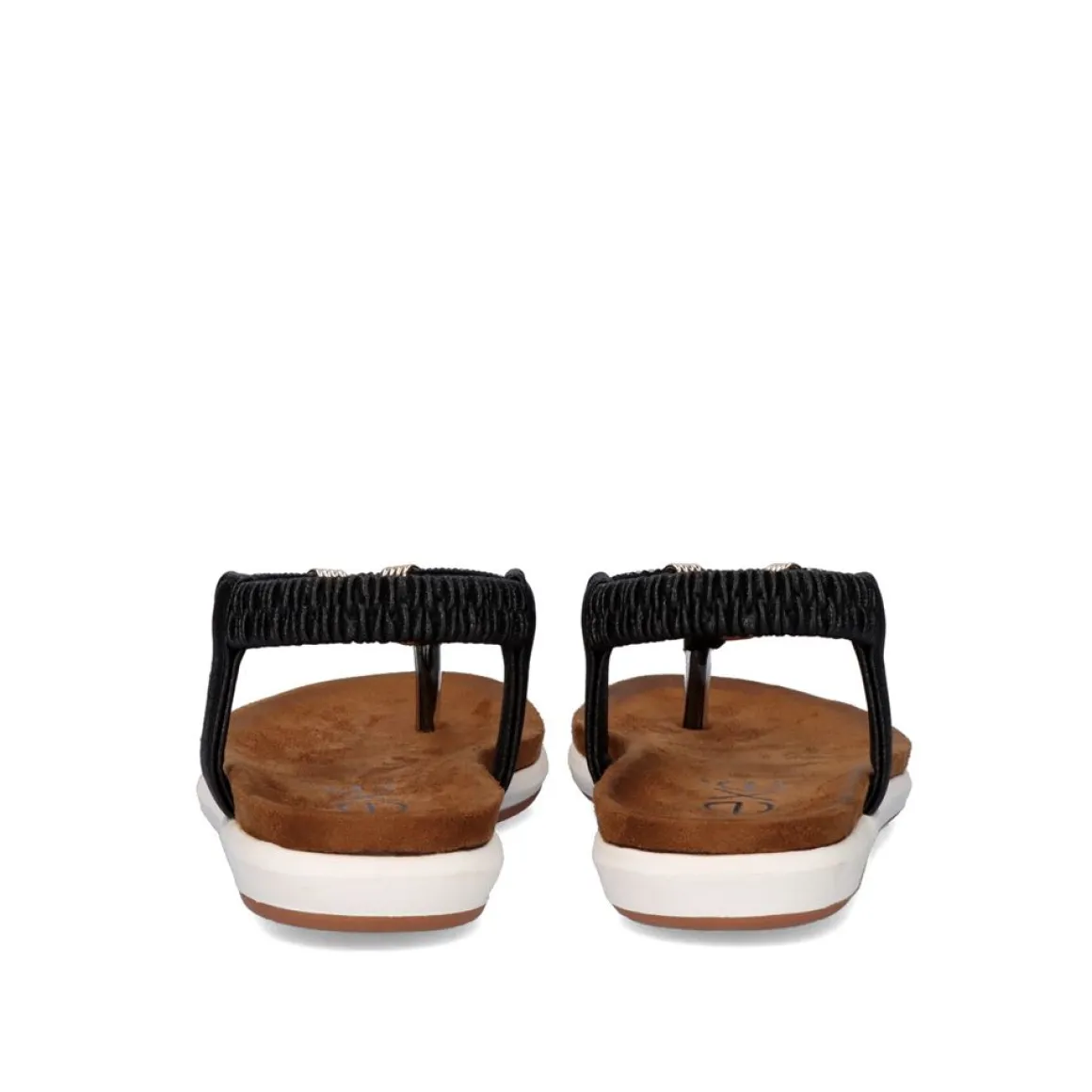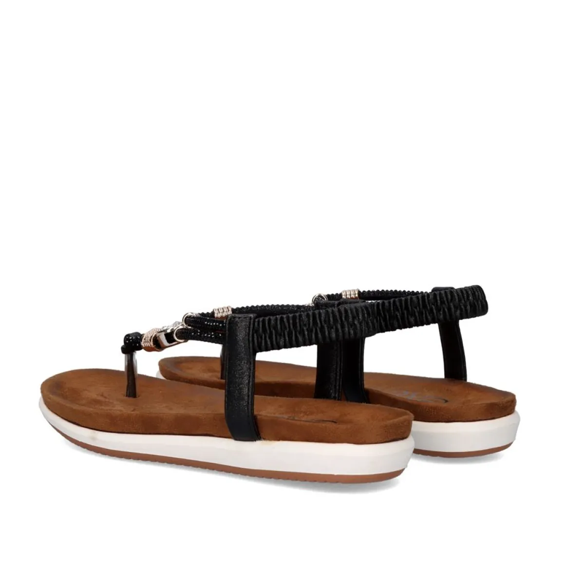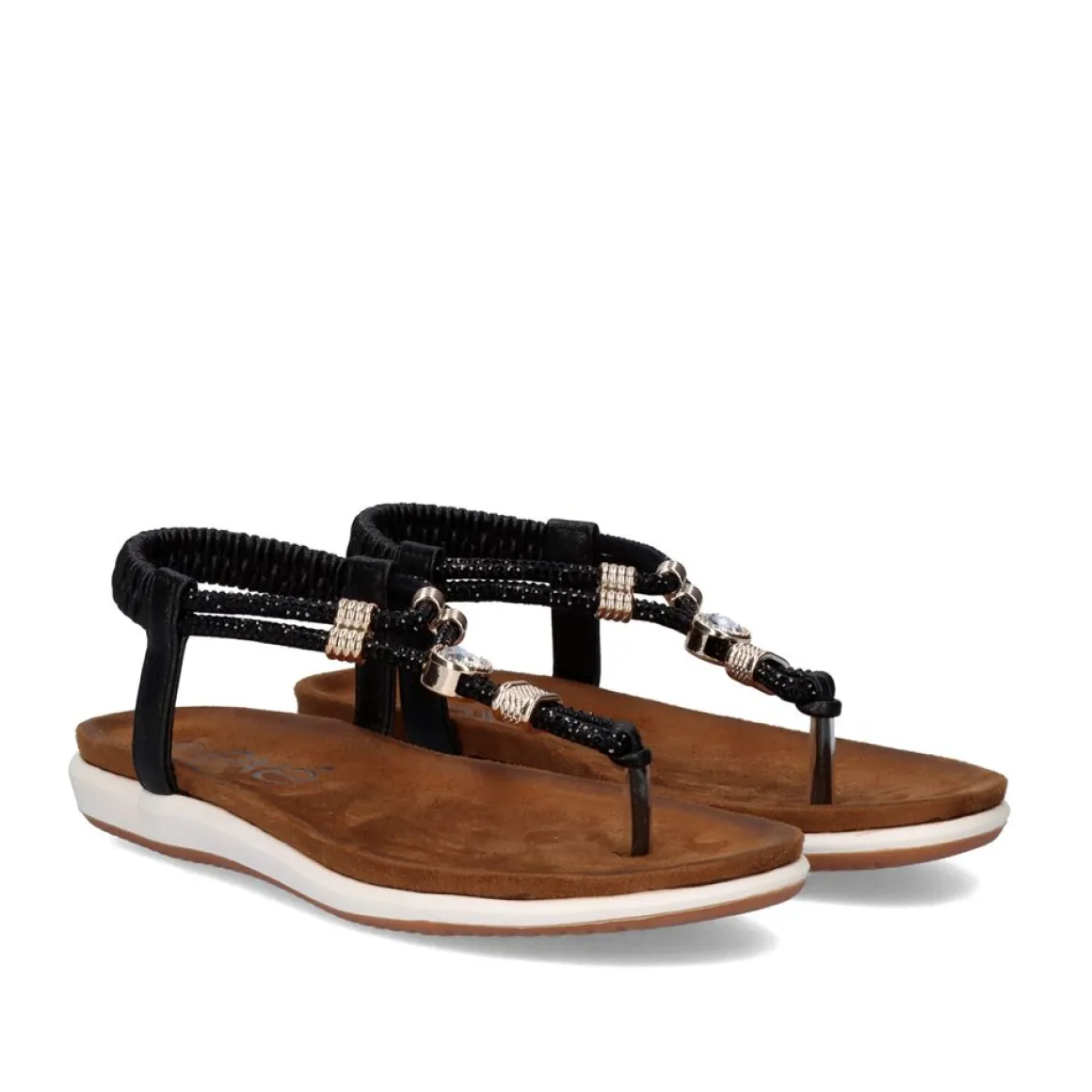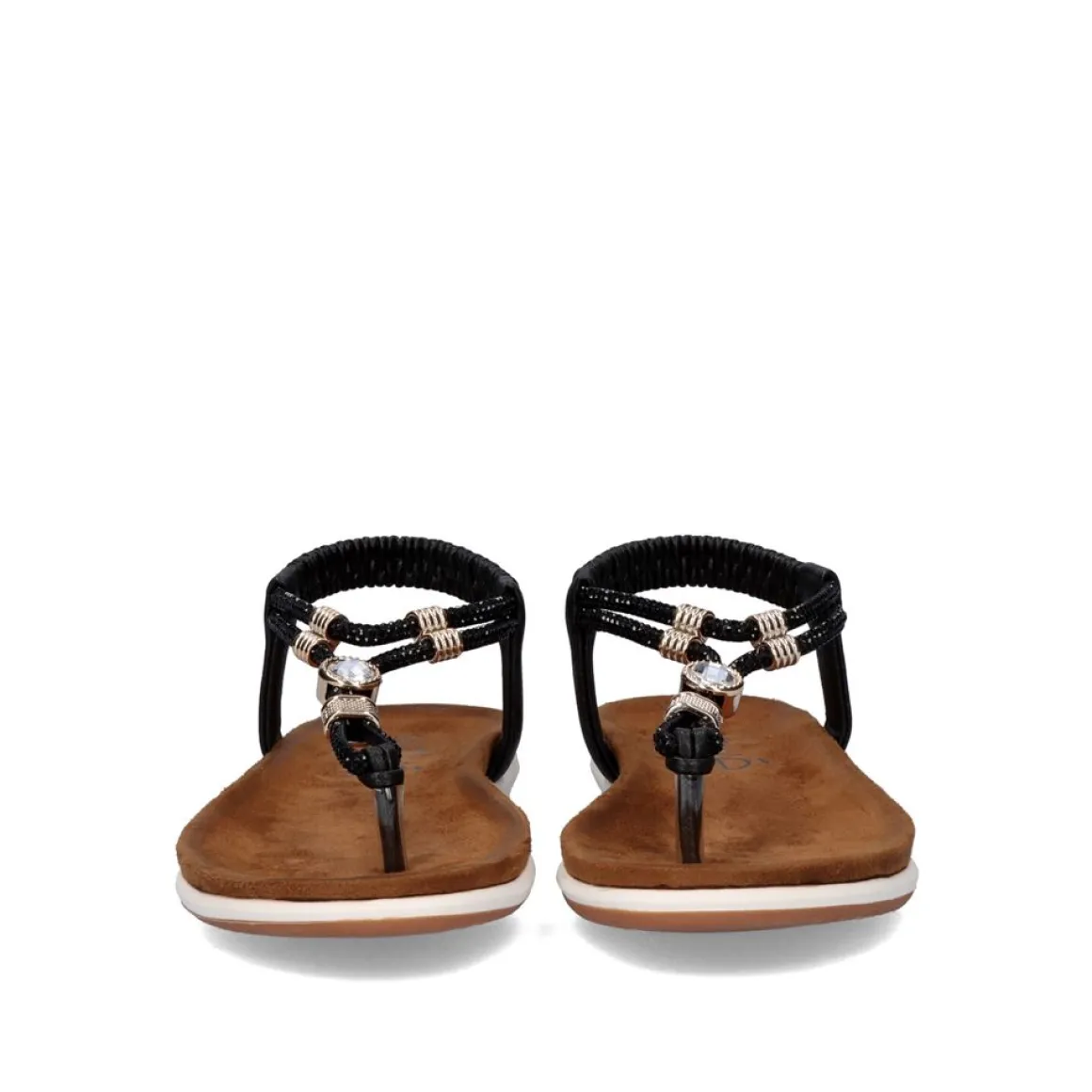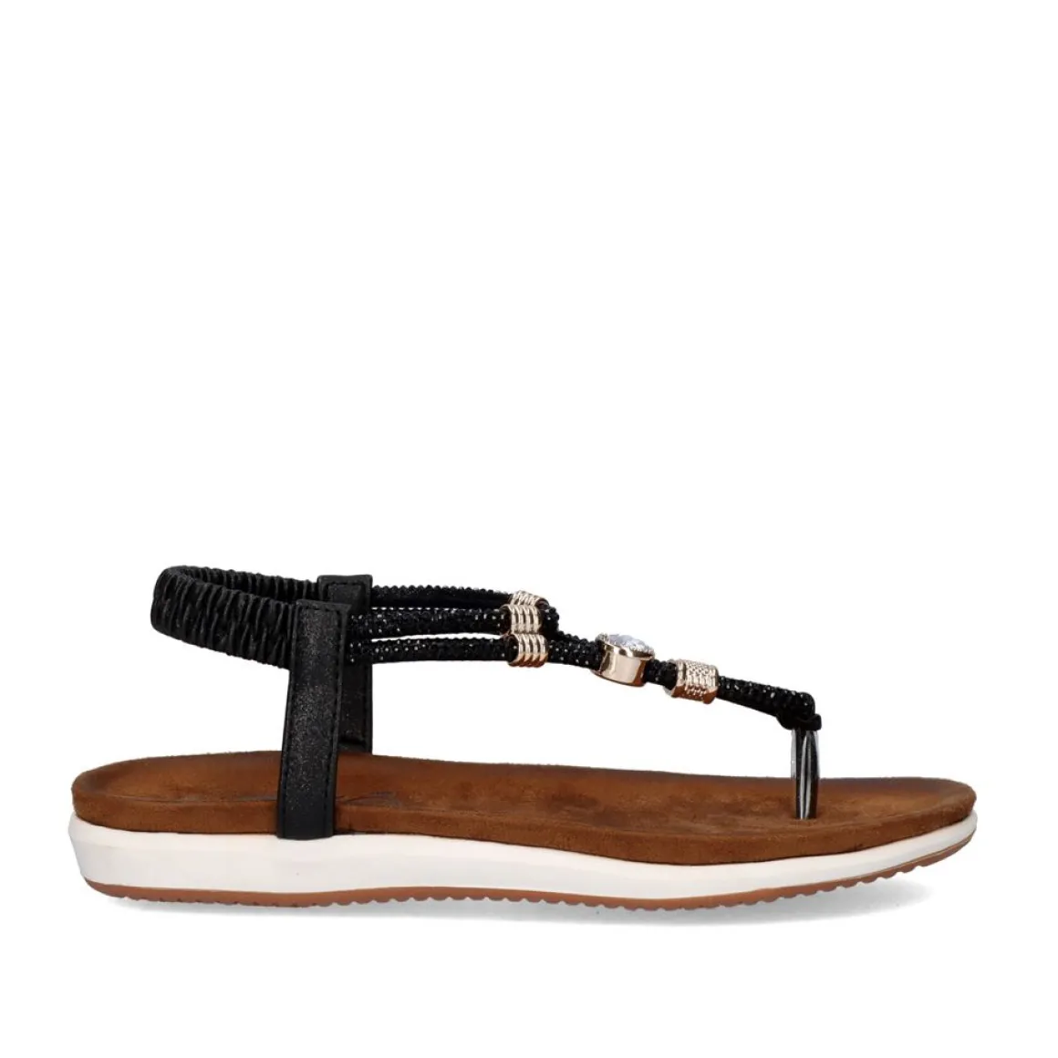 Sandalia Rasteira Sintetica Em Preto Com Detalhes Brilhantes Nas Tiras.