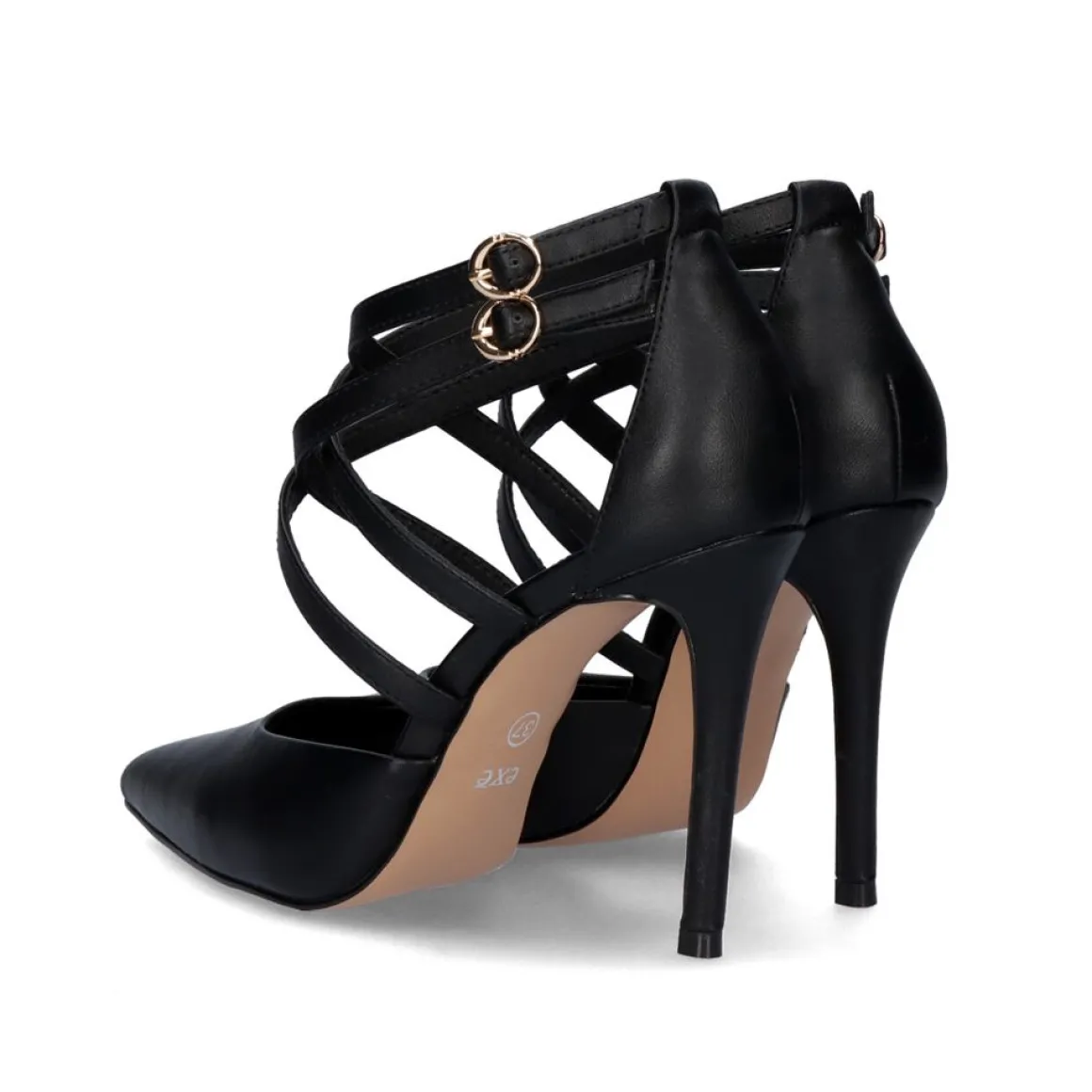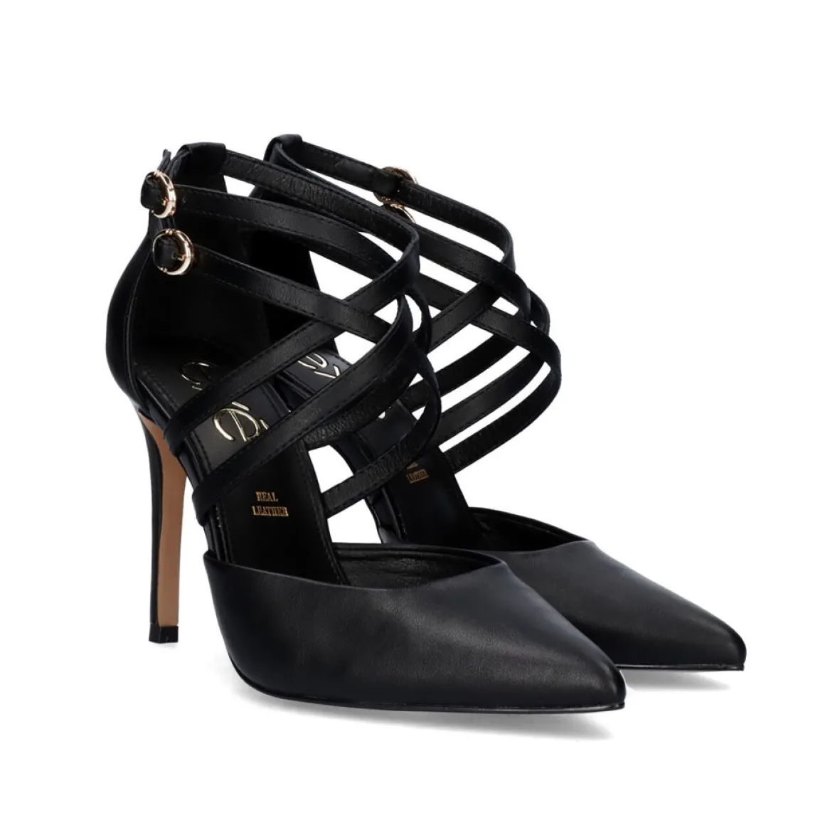 Sapato Calcanhar Jessica-676 Preto Com Tiras