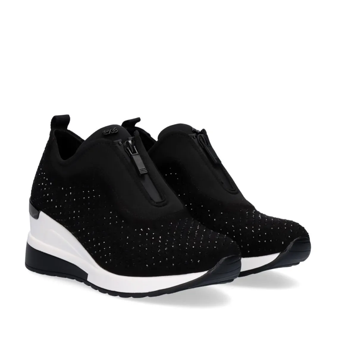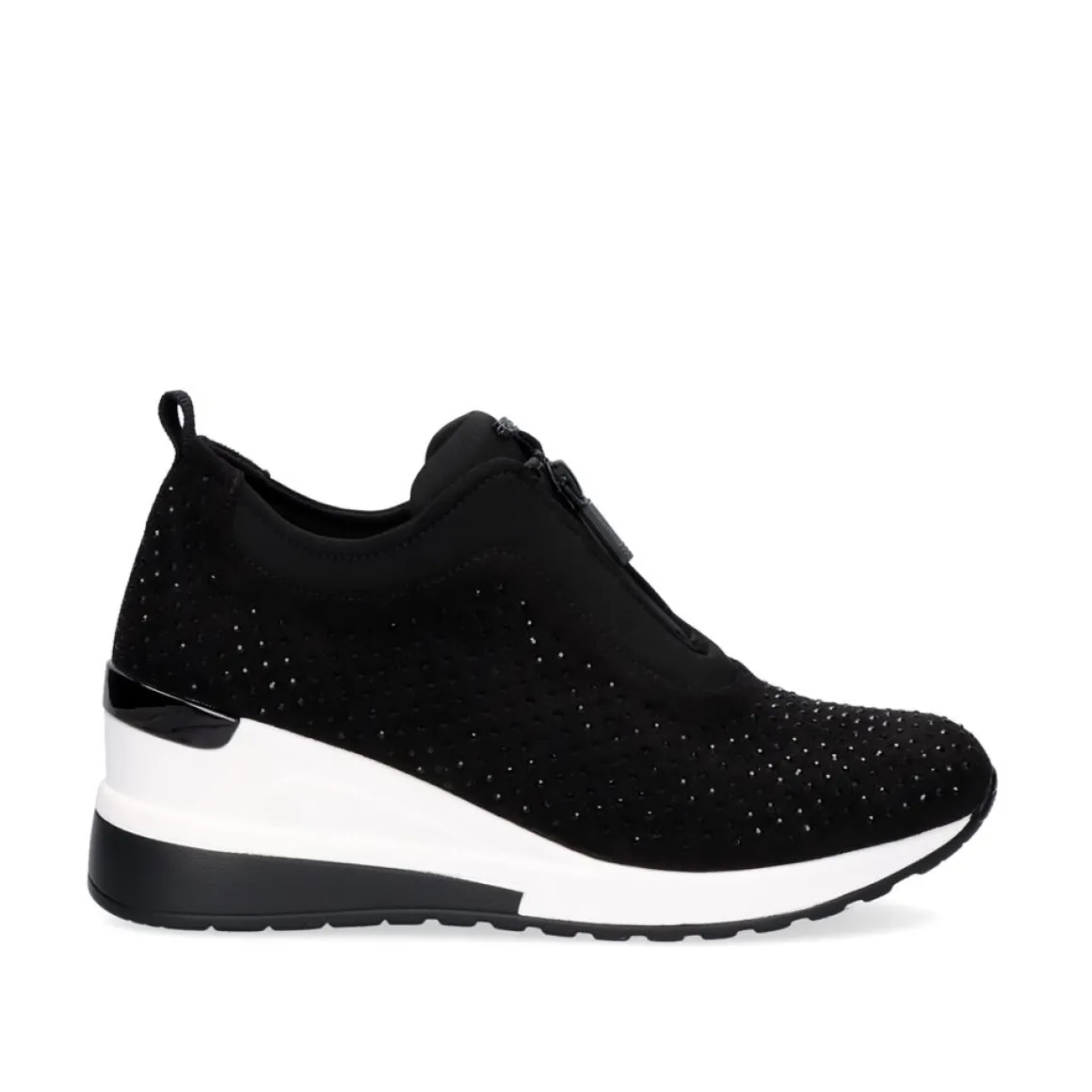 Sapatilhas Pretas Com Detalhes Brilhantes E Fecho Na Parte Superior Com 6 Cm De Plataforma. A Composicao E De Sola Sintetica, Sola Superior Brilhante E Palmilha Textil.