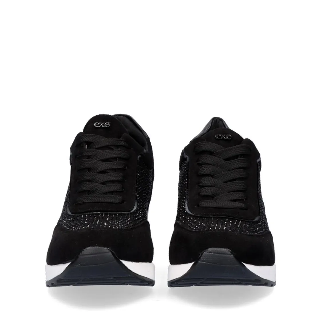 Sneaker Plataforma Ex25 Em Preto Com Brilhantes