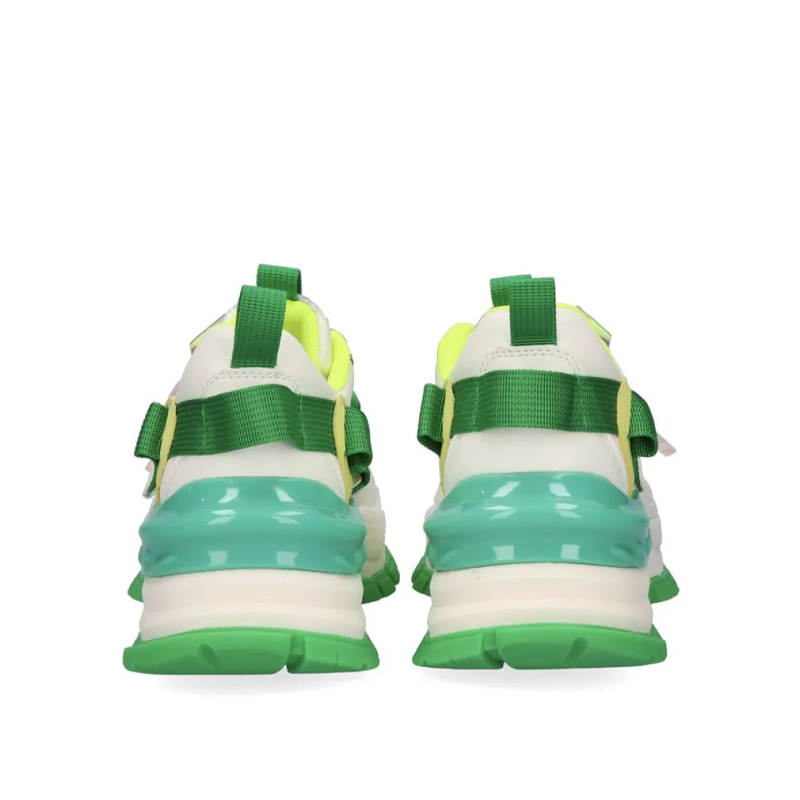 Tenis Na Cor Verde Branca Com Sola De 6 Cm. Seu Corte E Sola Sao Sinteticos, Sua Palmilha E Feita De Material Textil. Tem Fechamento De Renda.