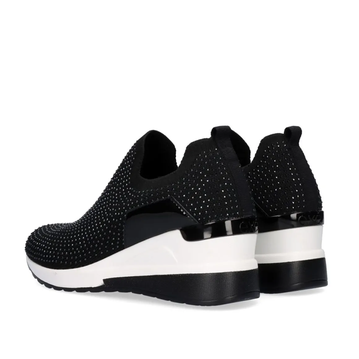 Tenis Em Preto E Brilhante Com Cunha De 7Cm. Seu Corte E Sola Sao Sinteticos, A Palmilha E Feita De Material Textil.