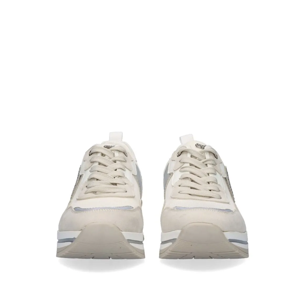 Tenis De Plataforma De 5 Cm Na Cor Branca Com Brilho. Seu Corte E Sola Sao Feitos De Material Sintetico, Sua Palmilha E Feita De Material Textil. Tem Fechamento De Renda.