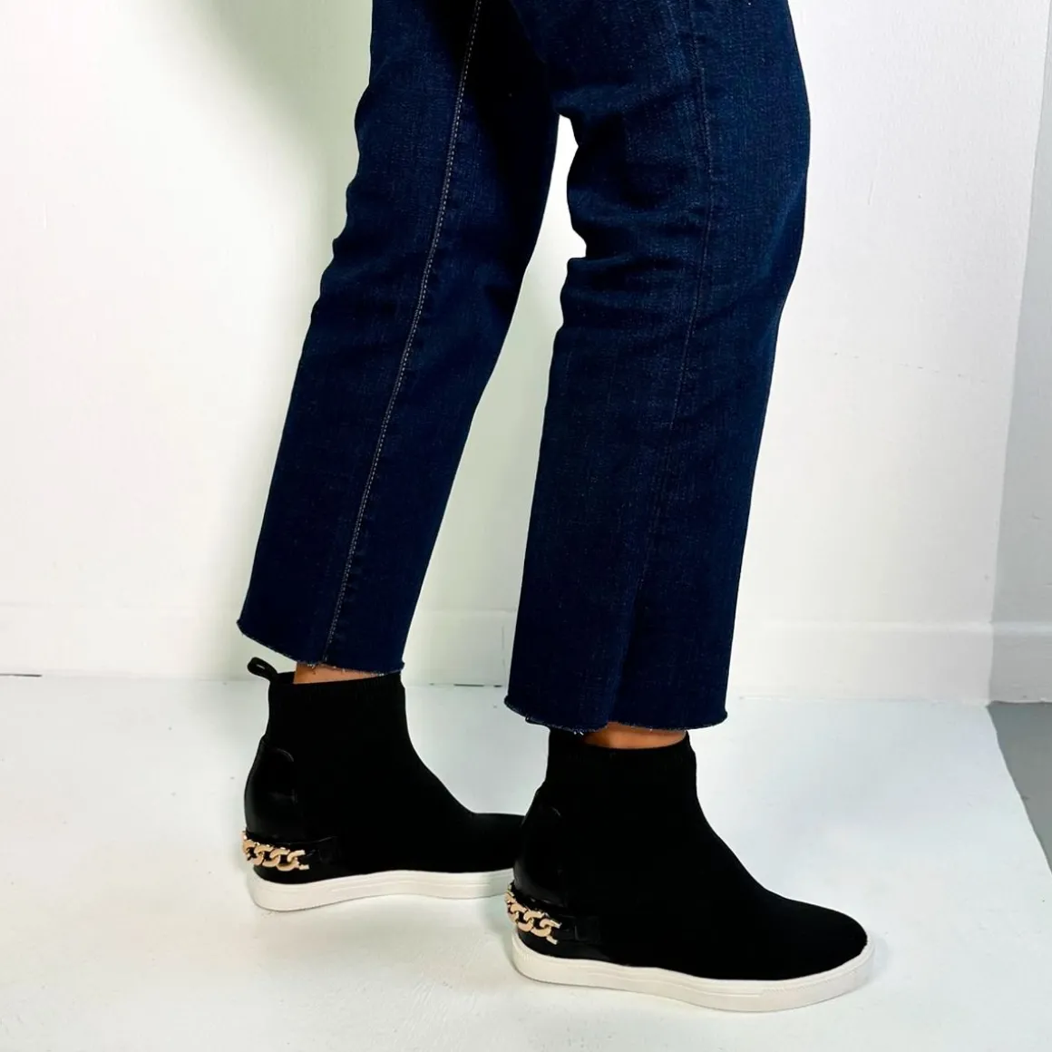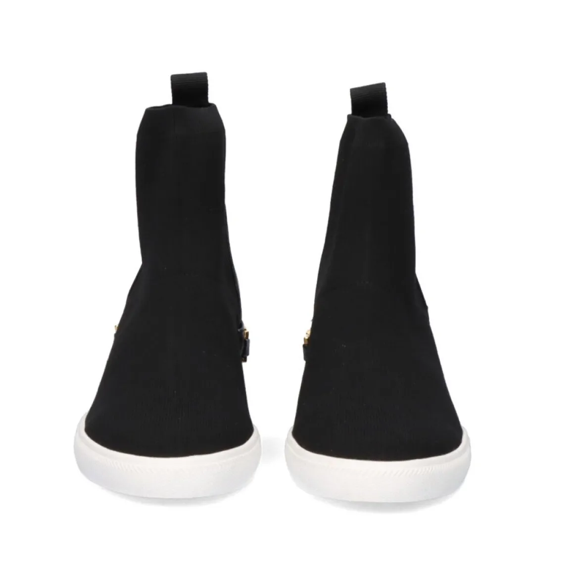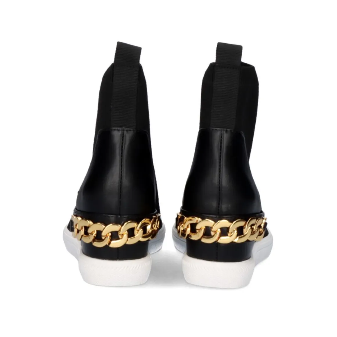 Sneakers Regina Em Cor Preta, Com Detalhes Dourados No Verso. O Calcanhar Mede 5,5 Cm E O Calcanhar Do Dedo Do Pe 2 Cm. A Composicao Da Sua Planta E Feita De Materiais De Couro, Corte Em Kint E Sola Exterior Sintetica