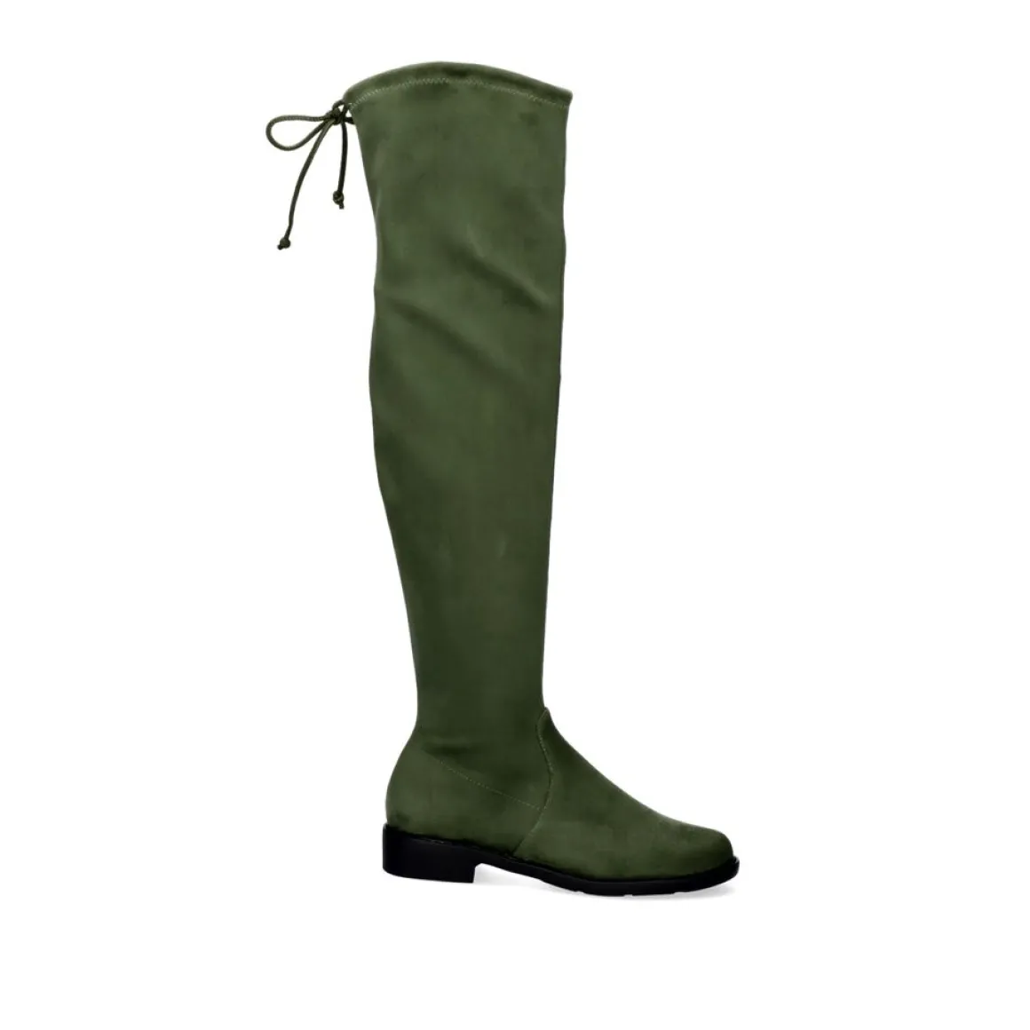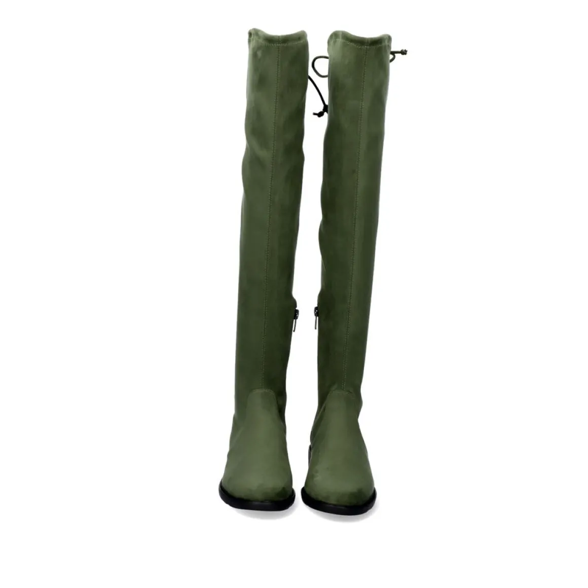 Botas Estilo Mosqueteiro Em Verde. Alto 53 Cm De Altura E Calcanhar De 3 Cm. Parte Superior Em Microfibra, Sola De Couro E Sola Sintetica.