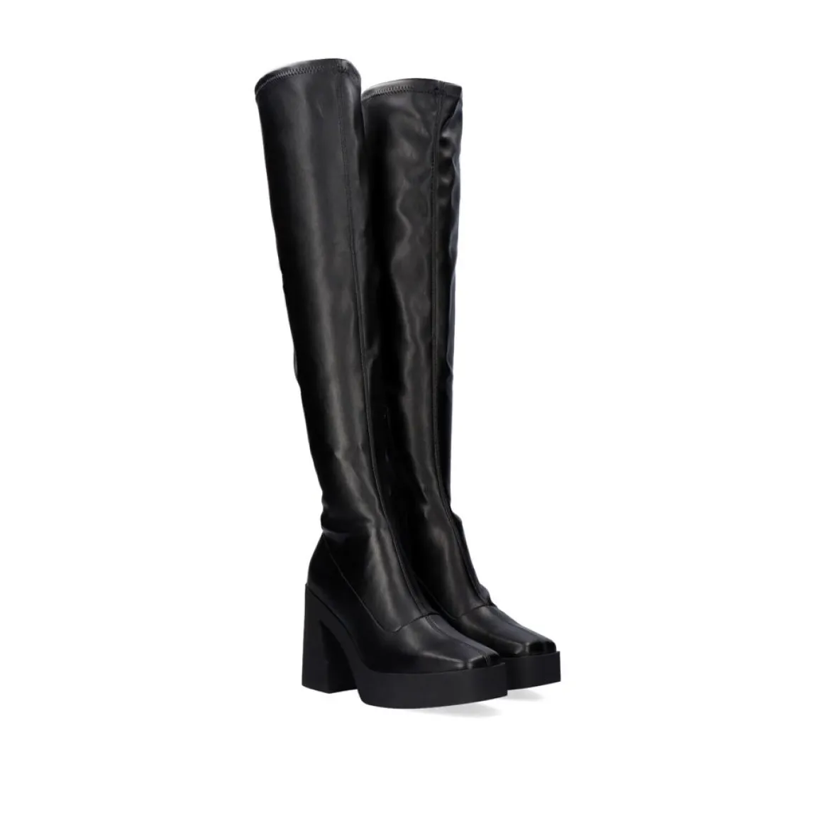Bota De Salto Alto Em Preto. Fecho De Correr E Sola Sintetica, Sola Sintetica E Pu Superior.