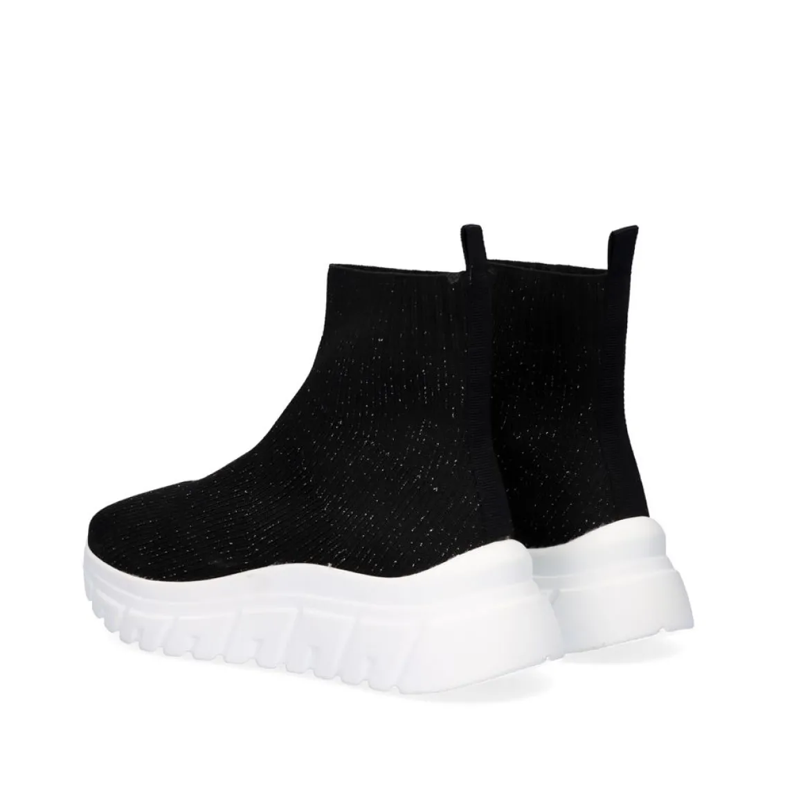 Tenis Estilo Meia Preta Com Detalhes Brilhantes E Plataforma De 5,5 Cm. Fabricado Com Materiais Sinteticos Na Sola, Kint Superior E Sola Texti