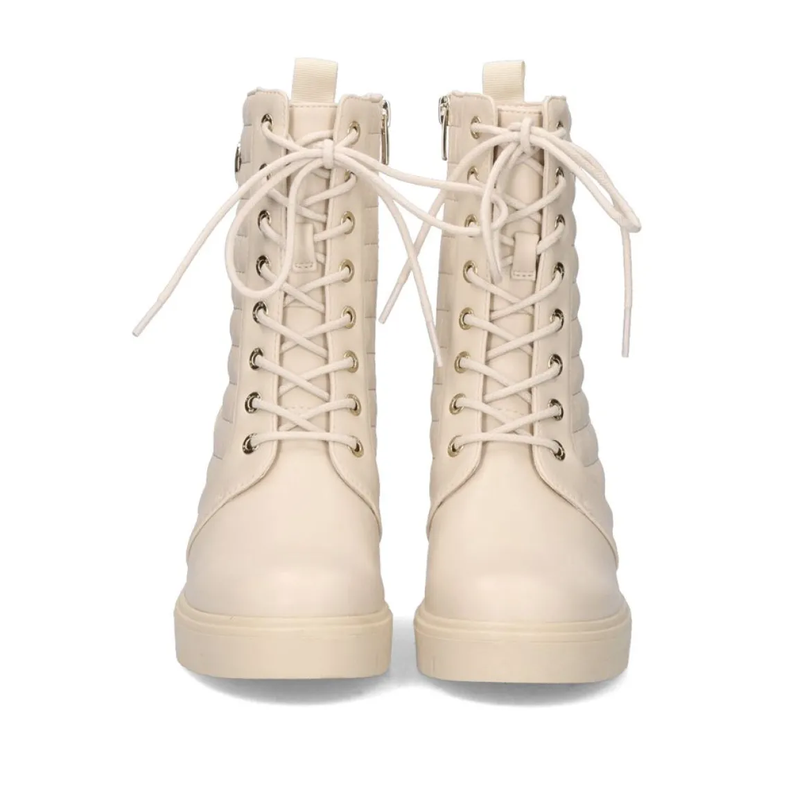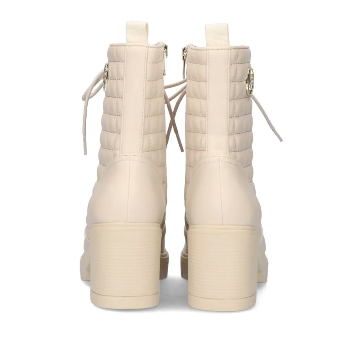 Botas De Tornozelo De Estilo Militar Em Cor De Gelo Com Um Detalhe Dourado Na Lateral E Atacadores Na Frente. Calcanhar Cm De Altura E Composicao Sintetica Para A Sola, A Parte Superior De Pu E A Sola De Couro.