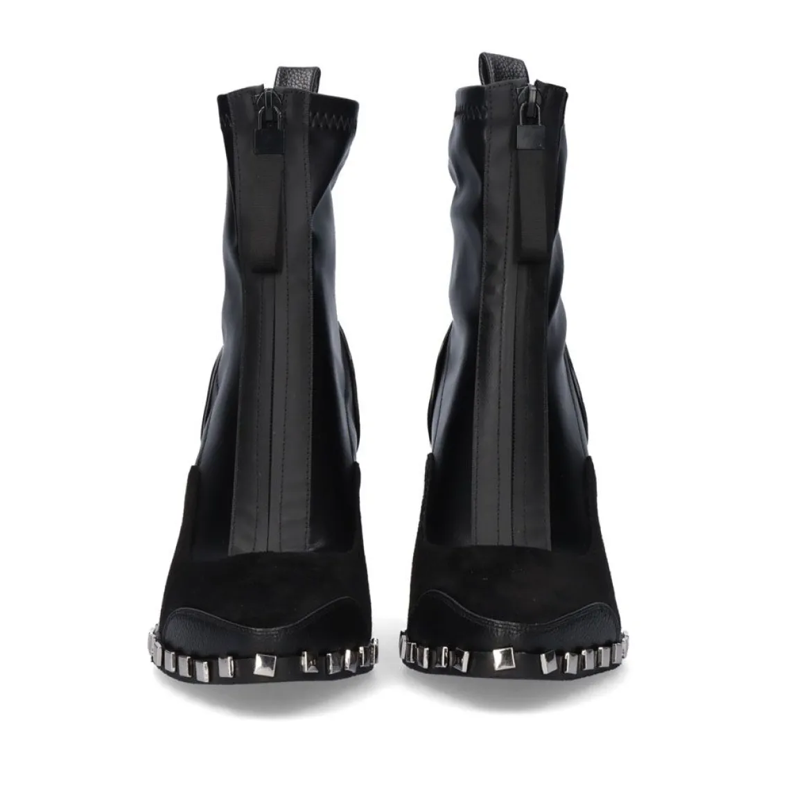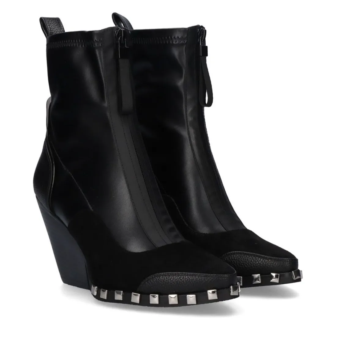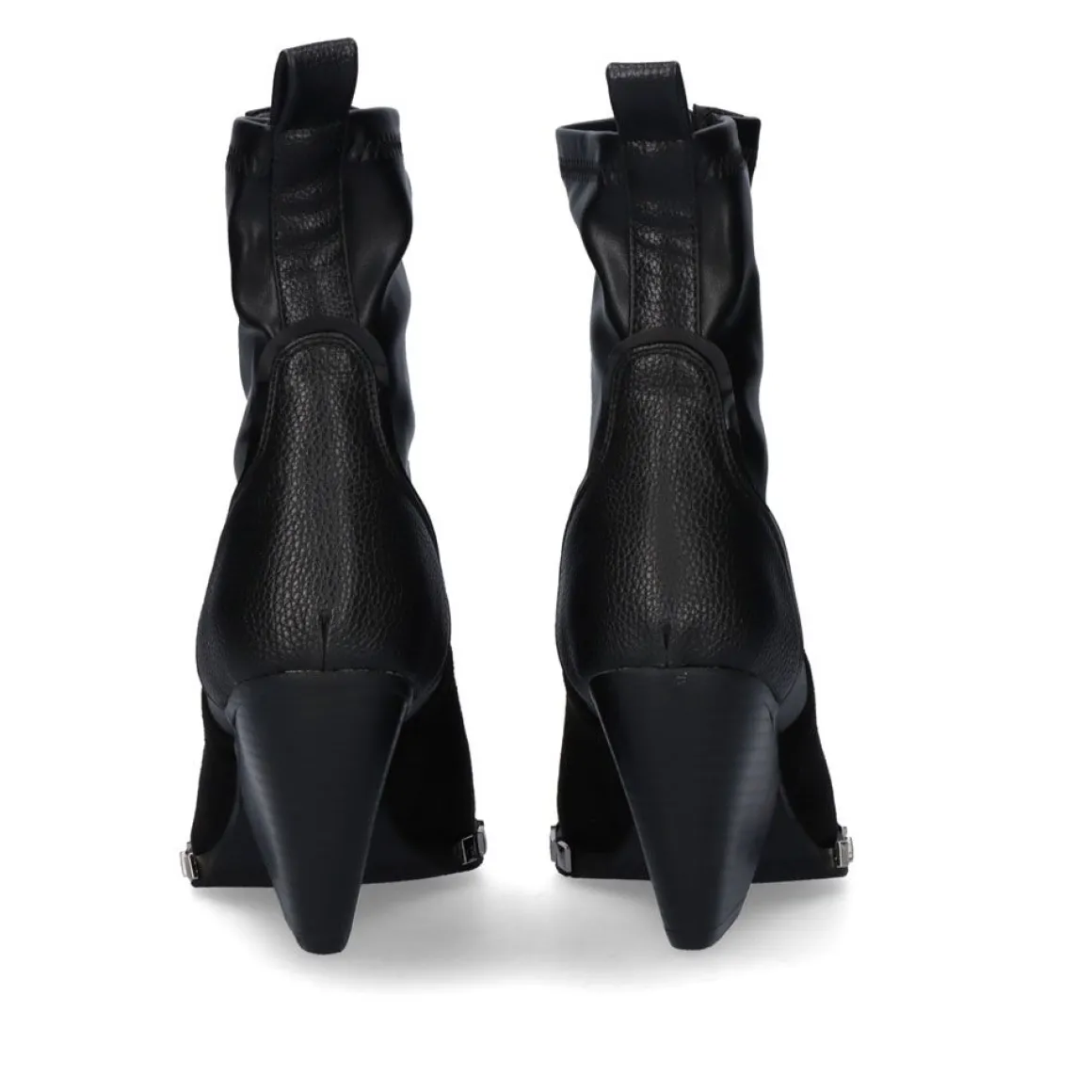 Botins Estilo Cowboy Em Preto. O Seu Corte E Sola Sao Feitos De Material Sintetico E A Sua Palmilha E Feita De Material Textil. A Altura De Sua Bengala E De 15 Cm E Seu Calcanhar Mede 9 Cm. Tem Pregos Decorativos E Fecho Com Fecho De Correr.