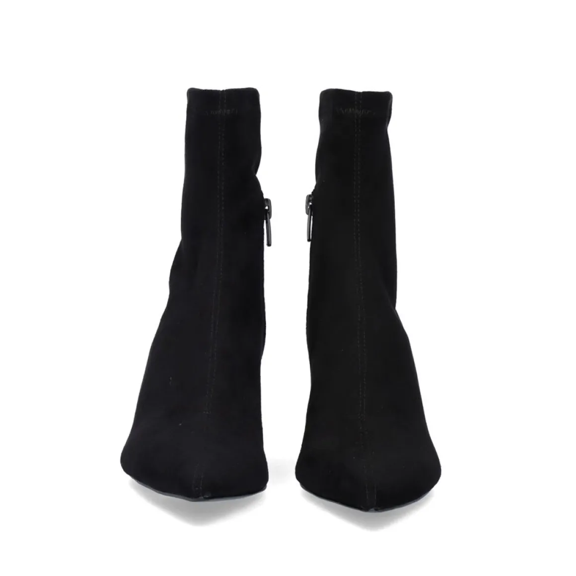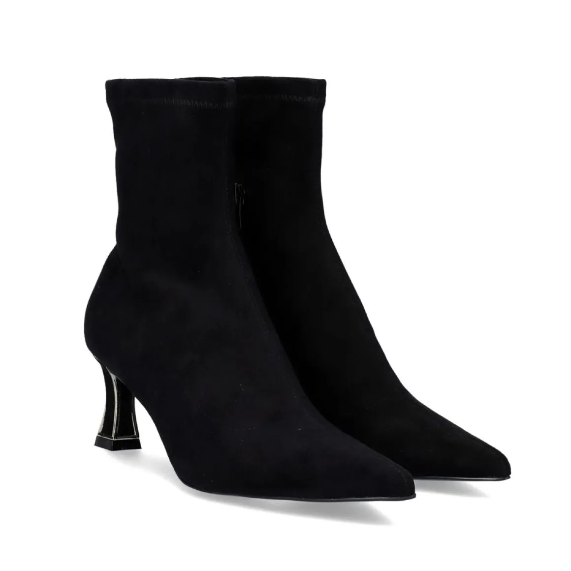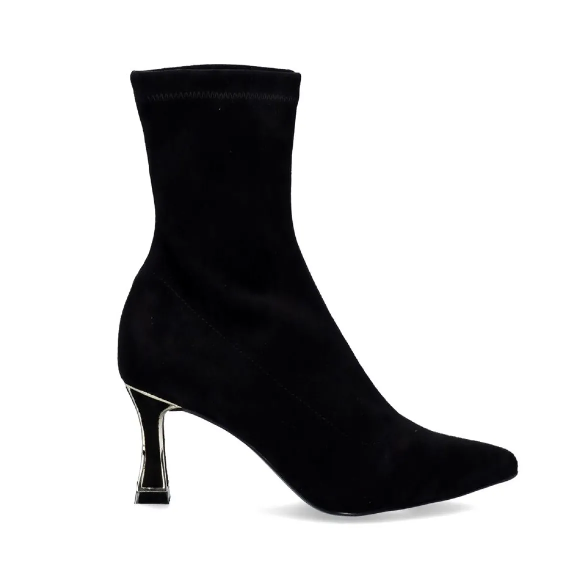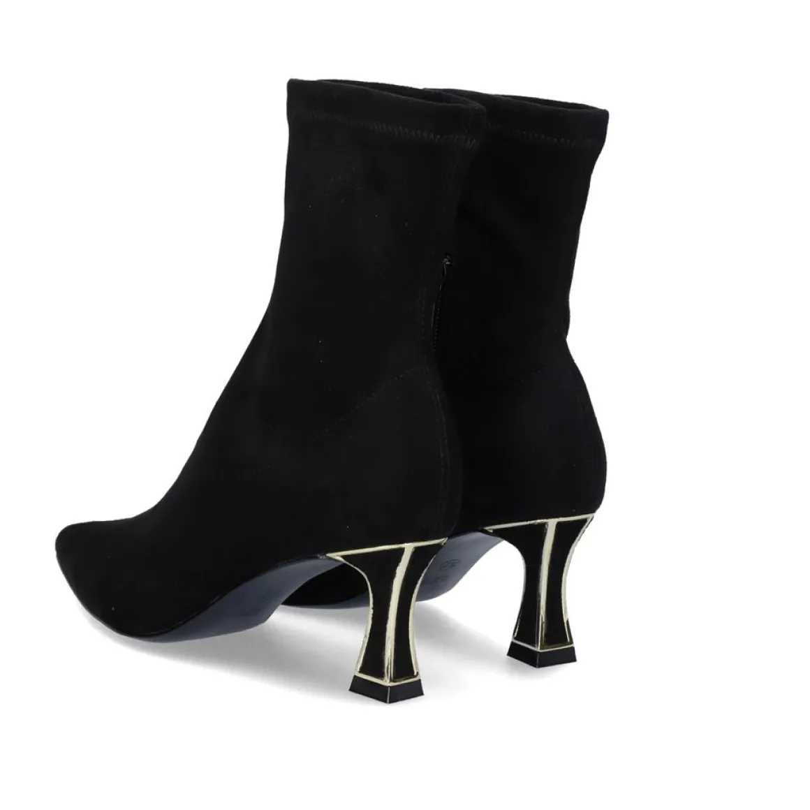 Botas De Tornozelo Pretas Estilo Camurca Com Acabamento Em Microfibra Com Calcanhar Fino E Detalhes Em Ouro. A Altura Da Sua Vara E De 16 Cm E O Salto De 6,5 Cm. Sao Compostos Por Materiais Sinteticos.