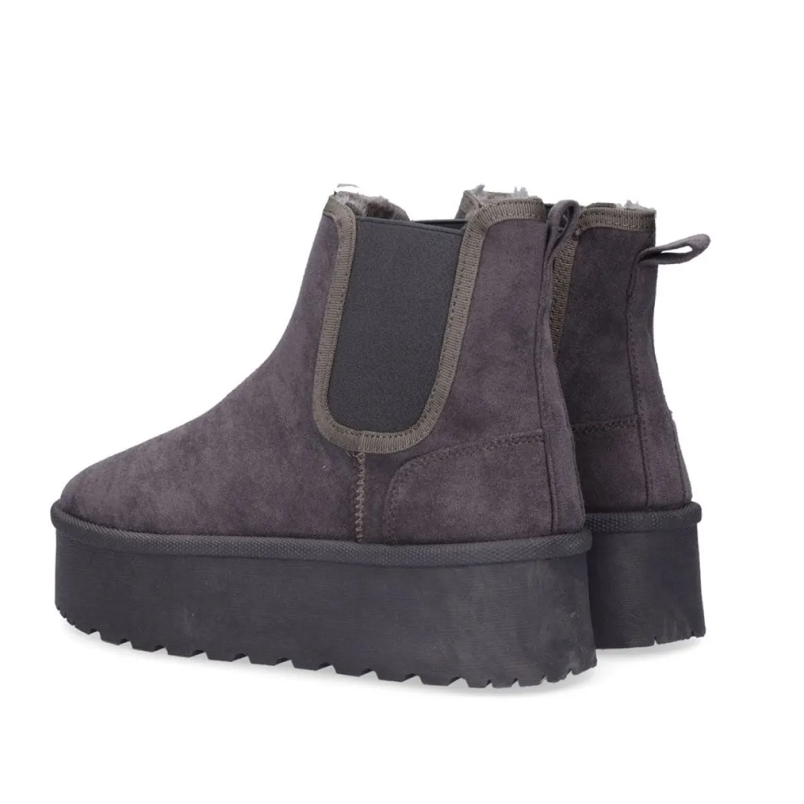 Botins De Plataforma Em Cinza. O Seu Corte E Palmilha Sao Feitos De Material Textil E A Sua Sola E Feita De Material Sintetico. Eles Tem Elasticos Nas Laterais Para Melhor Se Encaixar No Tornozelo E Seu Interior E Cabelo Macio. A Bengala Tem Uma Altura De 11,Medio. Alem Disso, A Plataforma Mede Medio No Calcanhar E 4,Medio Na Ponta.