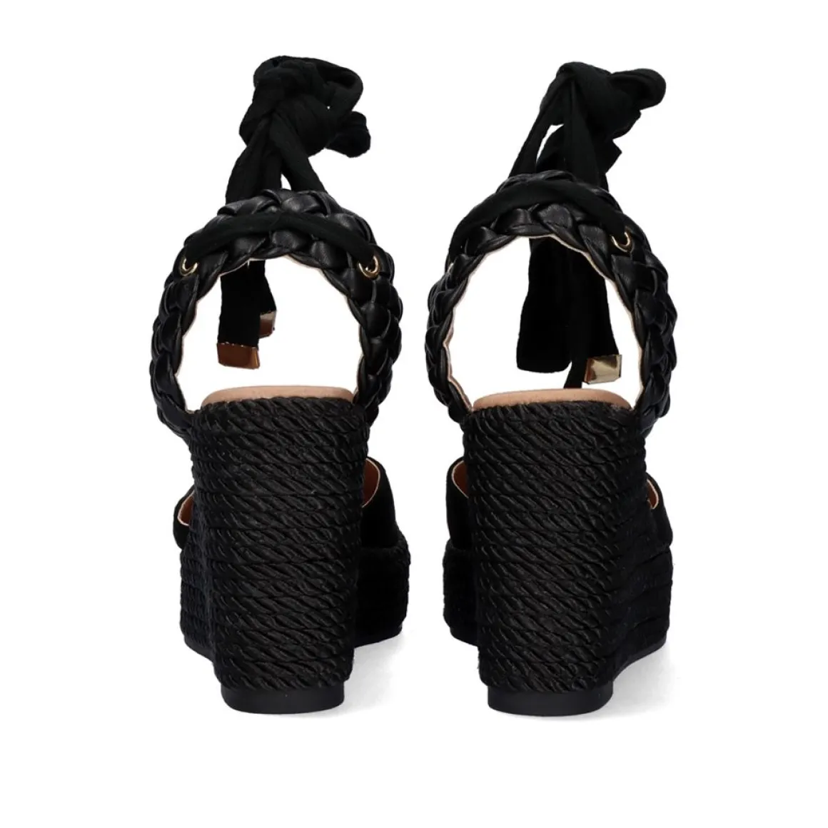 Cunha Forrada Com Corda Trancada, Bem Como A Parte Que E Levada Para O Calcanhar. Como Fechamento Tem Uma Tira Que E Atada Ao Tornozelo, Sua Parte Frontal E Fechada Composta De Material Sintetico. A Planta E Feita De Pele.