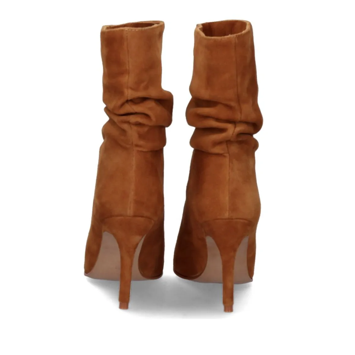 Botas De Tornozelo De Cor Camelo Com Tecido Drapeado, Feitas De Materiais Sinteticos. A Altura Do Seu Calcanhar E De 9 Cm E A Sua Haste De 16 Cm.