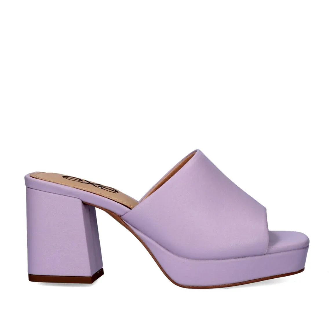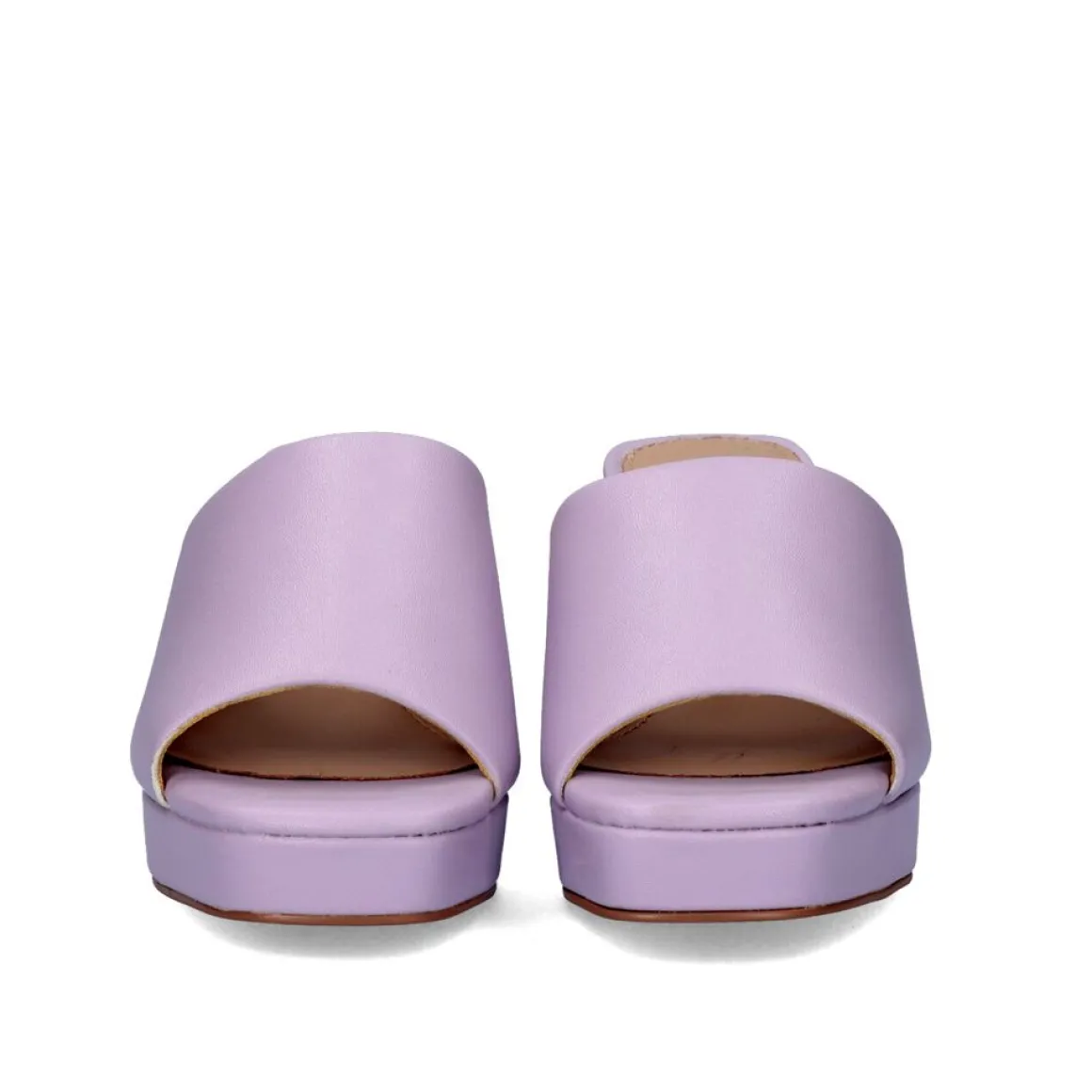 Sandalia Rasa Tipo Tamanco Tipo Tamanco Na Cor Lilas. Composto Por Materiais Sinteticos E Couro Vegetal. Altura Do Salto De 8 Cm E Plataforma De 2,5 Cm.