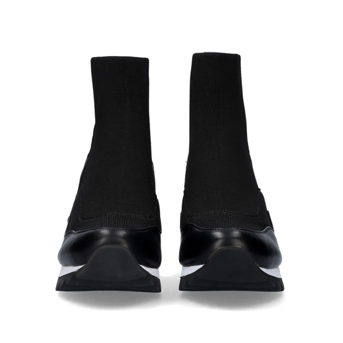 Botas De Tornozelo Estilo Meia Em Preto E Cunha De 7,5 Cm, Com Detalhes Em Prata Nas Costas. Altura Do Eixo 11,5 Cm. Composicao Textil Na Sua Planta, Corte Kint E Sola Sintetica.