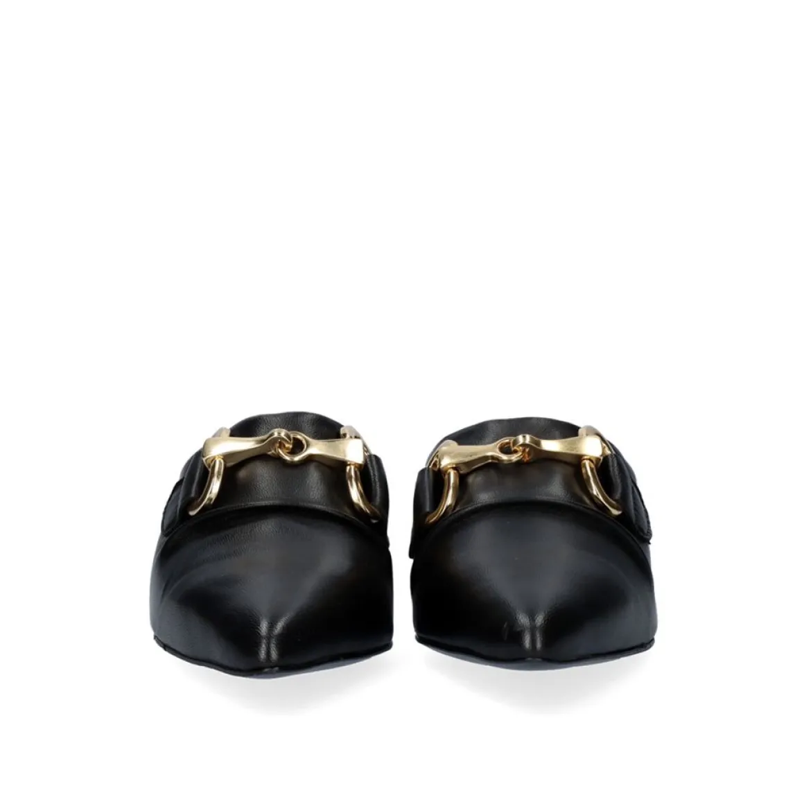 Mocassins Estilo Sandalia Preta Com Detalhes Em Ouro No Peito Do Pe. Composto Por Cano E Sola Em Couro E Sola Sintetica.A Altura Do Salto E De 3 Cm.