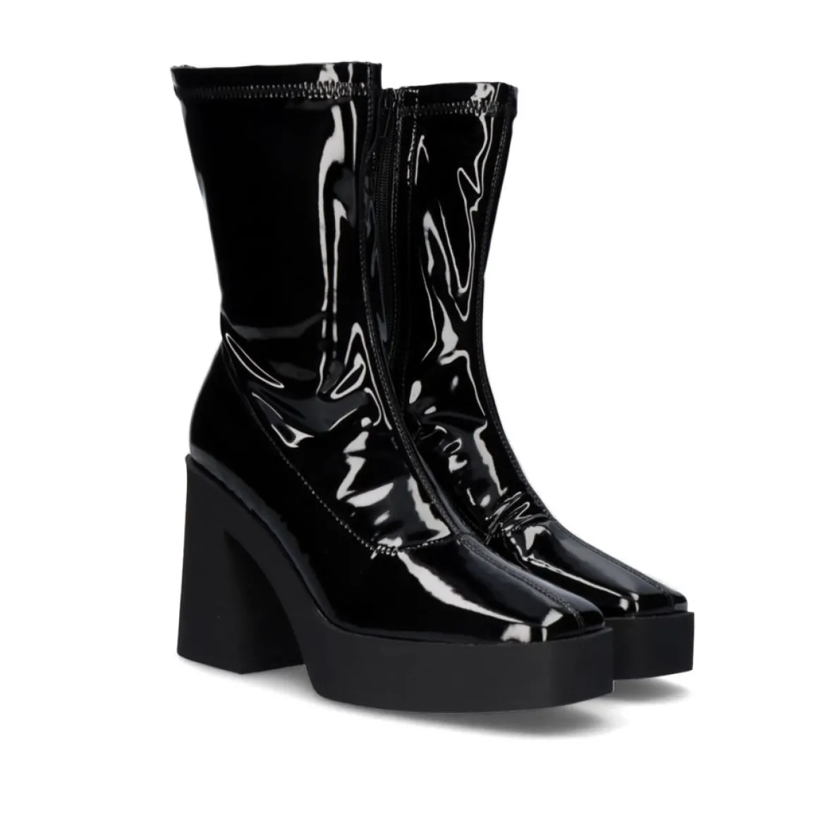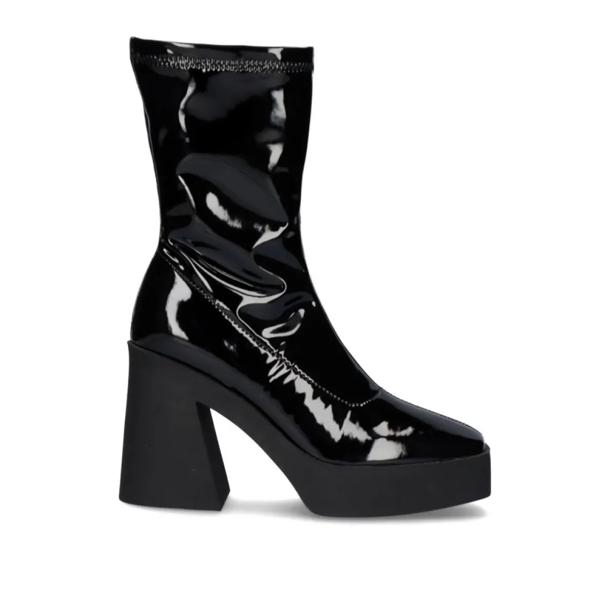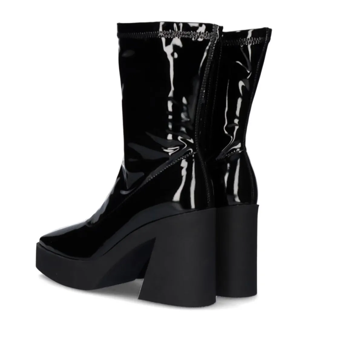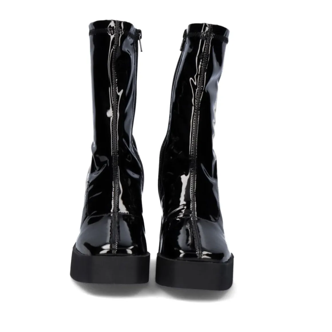As Botas De Tornozelo Em Couro Envernizado Ao Preto, Calcanhar De 10 Cm E Calcanhar De 3 Cm. Fecho De Correr Lateral E Altura Da Haste De 19 Cm. Composicao Sintetica Da Sola, Patente Cortada E Couro Da Sola.
